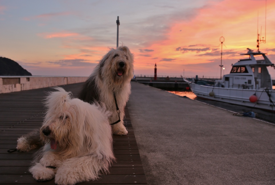夕方の散歩で以前~最作や紅葉とよく早朝の海岸で遊んだコナちゃんと片瀬漁港で逢いました~♪ 紅葉より1歳半年上のコナちゃんももう11歳になりましたがまだまだ元気です~♪
