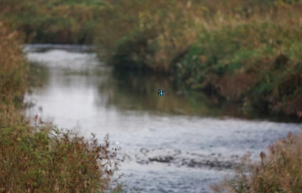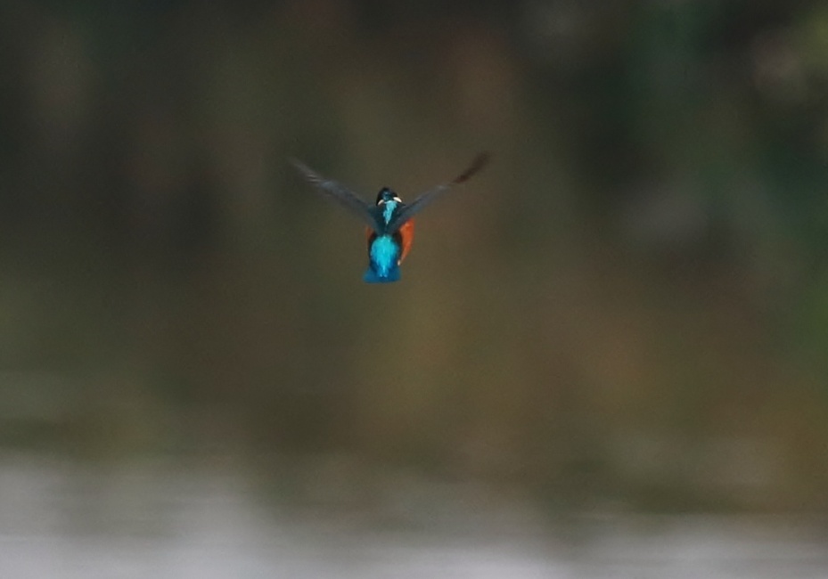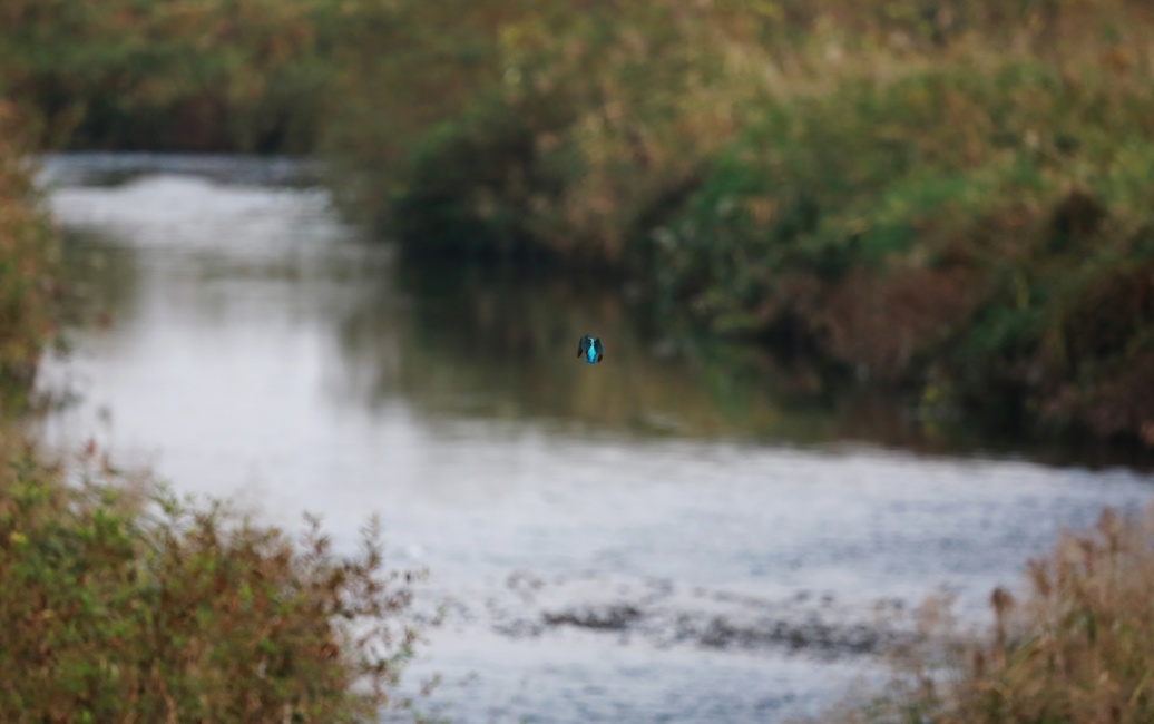 一日前後して、土曜日は又早朝散歩の時にカワセミ君がホバってくれました~♪ しかも直ぐ近くだったのですが、カメラのシャッタースピードを薄暗い中~早目にセットしておかなかったせいでピントが合っても又、羽が綺麗に写りません!~(悔)