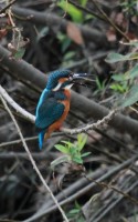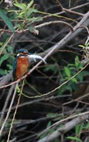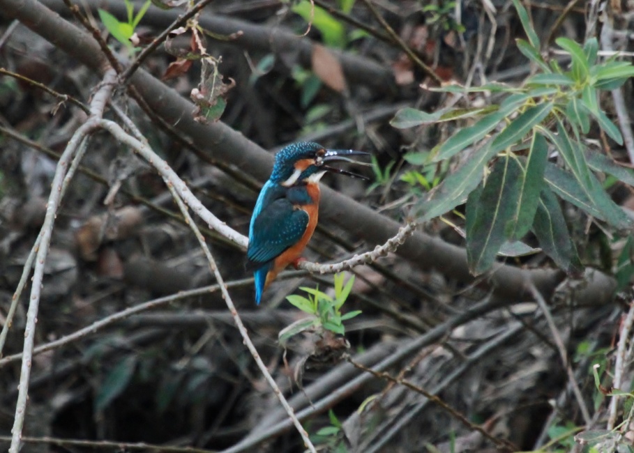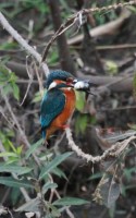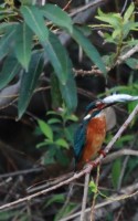 今朝はカワセミ君にしては大きな獲物を簡単にゲット!…これが”なかなか飲み込めずに長い時間もがいていました~(笑)