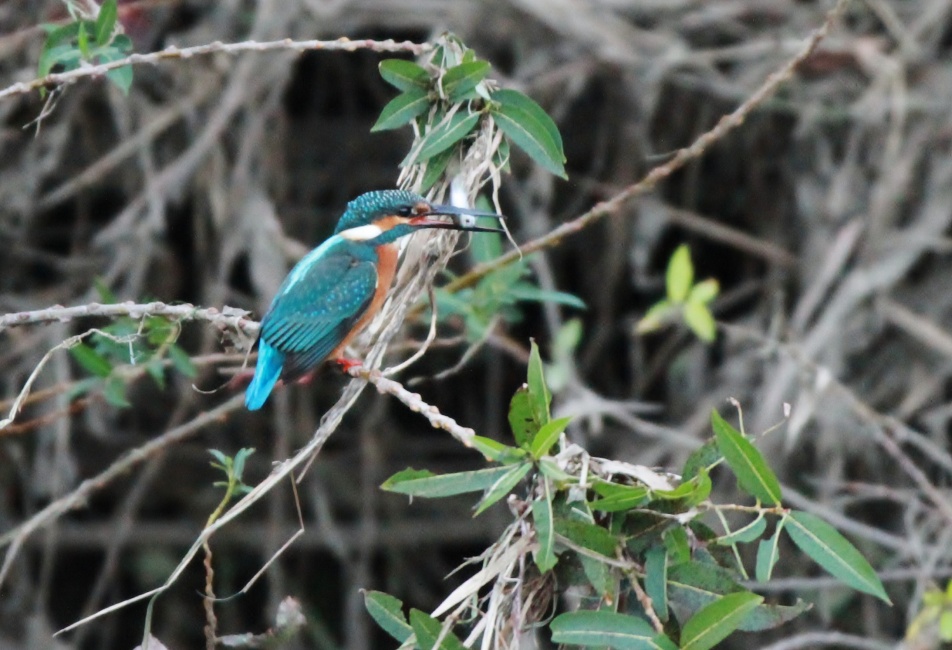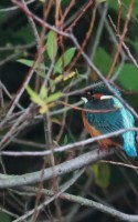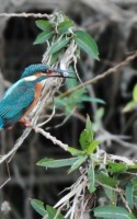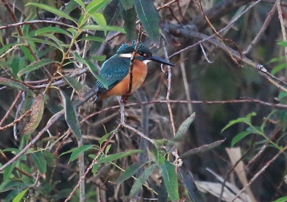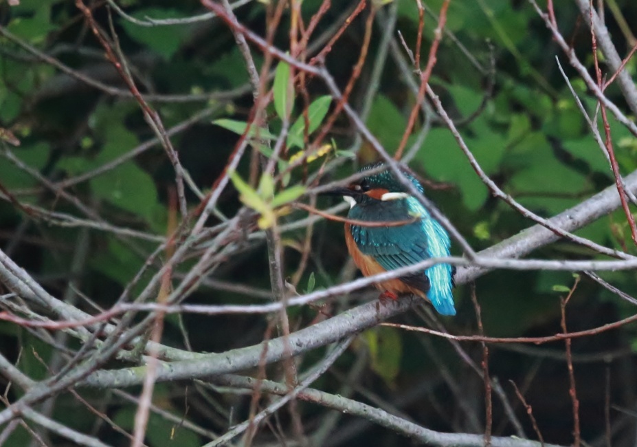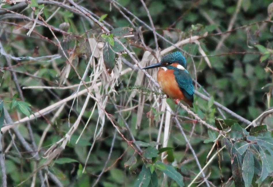 木が邪魔な場所に居たのですがわざわざ撮り易い枝にとまってくれてぇ~♪ 『撮れば!』……サービス精神旺盛な何時もの少し大きいカワセミ君です!そして川の方に移動し~