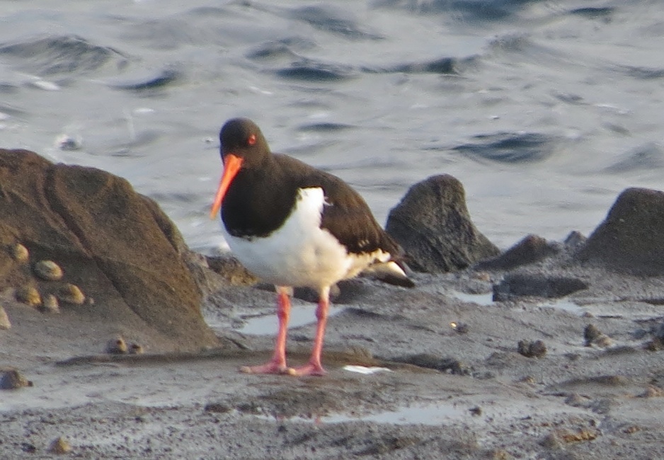 全然”気が付きませんでした~(笑) それでは早速”と島に渡り・・・・ 見渡すと一昨日はあれだけ沢山居たウミネコの姿も無く・・・これは駄目かな!っと思った瞬間~目に入ったのは割りと近くに居た1羽……ついに再度発見”ミヤコドリです!
