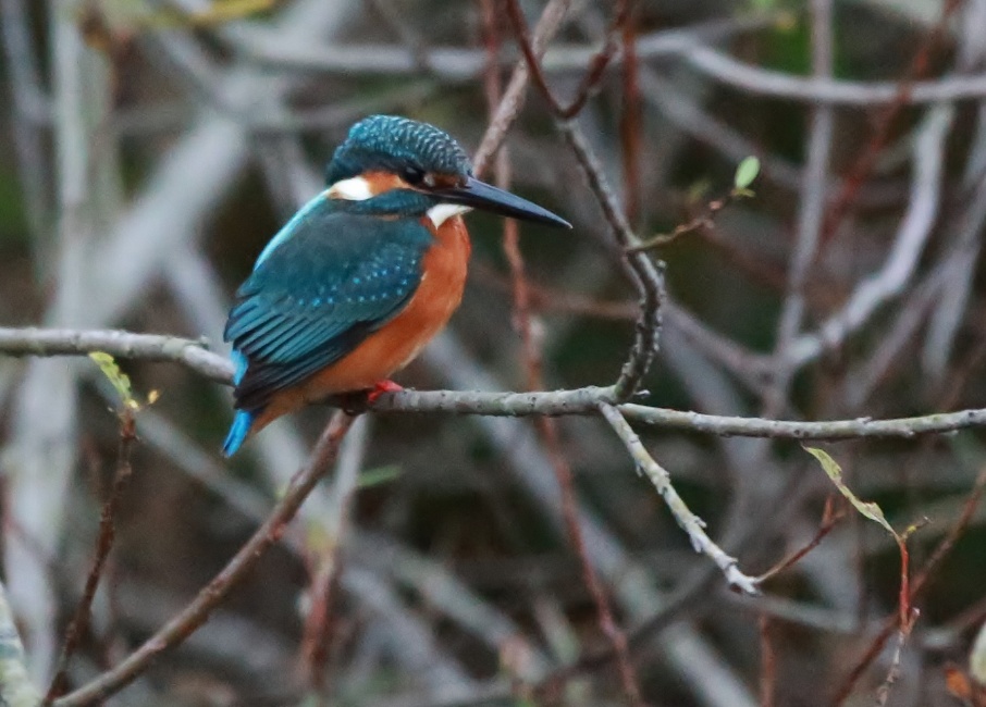 今朝もカワセミ君撮りは駄目かな?と思いながら…暗い中”一様小さな池の方に行くと、わざわざ顔を見せに来てくれました~♪ しかしまだかなり暗く、肉眼でははっときりと解らない程です。~