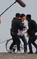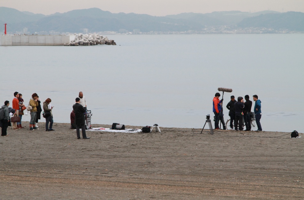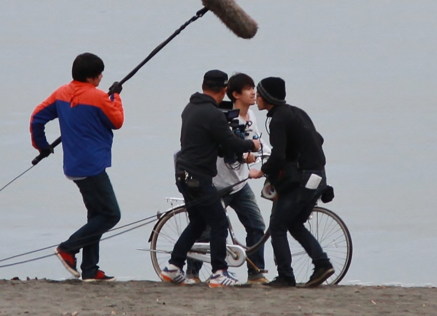 丁度”……『はい本番!』の掛け声が聞こえ・・・砂浜を自転車を押して5~6m歩くだけの…やけに短いシーン!の撮影でしたが・・・・(誰でしょう~?)