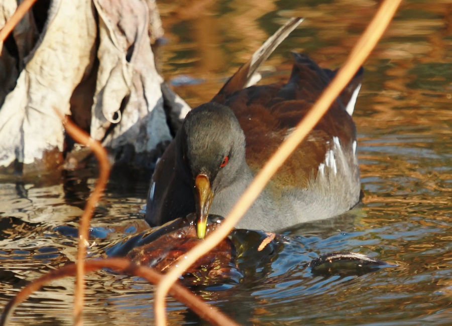 もう半分~翡翠撮り”は諦め、望遠レンズを付けて行かなかったのですが…… こんな時に限って橋の袂で~あの、まさお君が朝食GETに励んでいました~(笑)