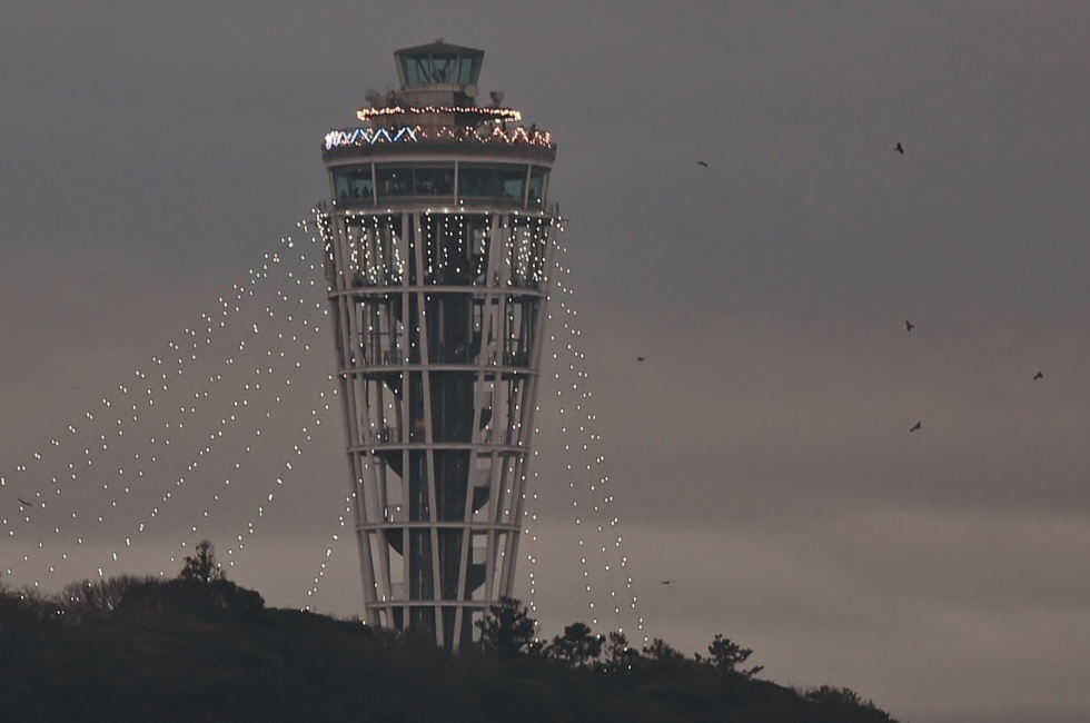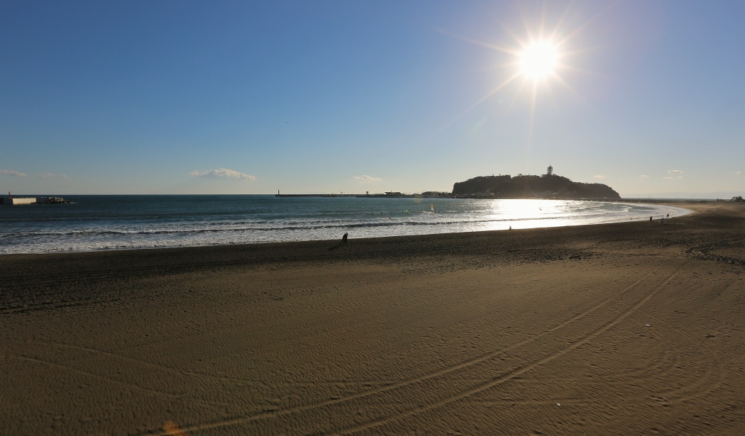 鵠沼の海岸から見た江ノ島のイルミネーションです。 まだ少し薄暗い中で……暗さが足りないかな?~(笑)