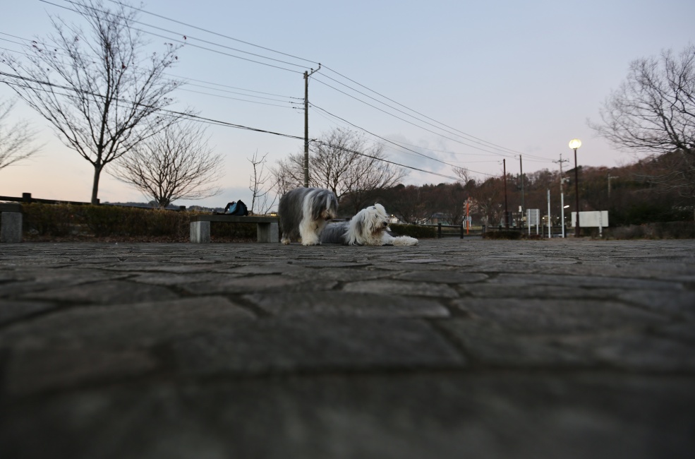相変わらず少し遅くなった午後の散歩時には雲が多く寒々しさも倍増の散歩も、ワン達は元気一杯です~♪