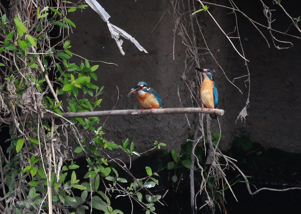 自宅から少し下流の翡翠のカップルも少し微妙な関係な時期か?以前ほど仲の良い姿を見せつけることも無く、それでも給餌も続いてはいますが・・・