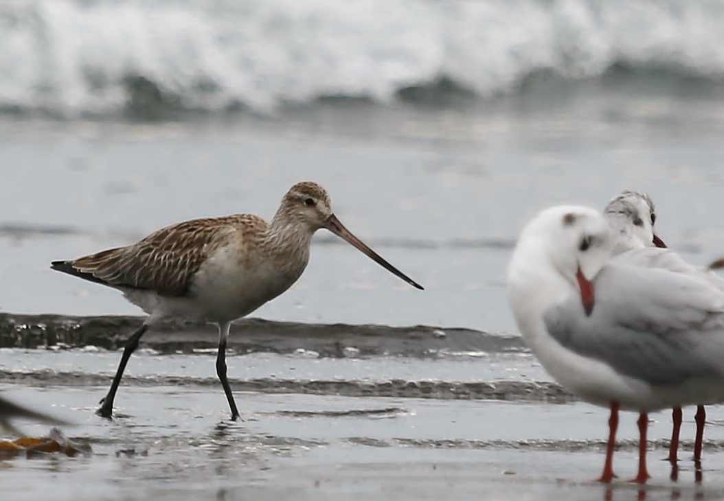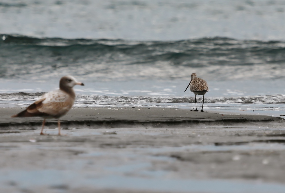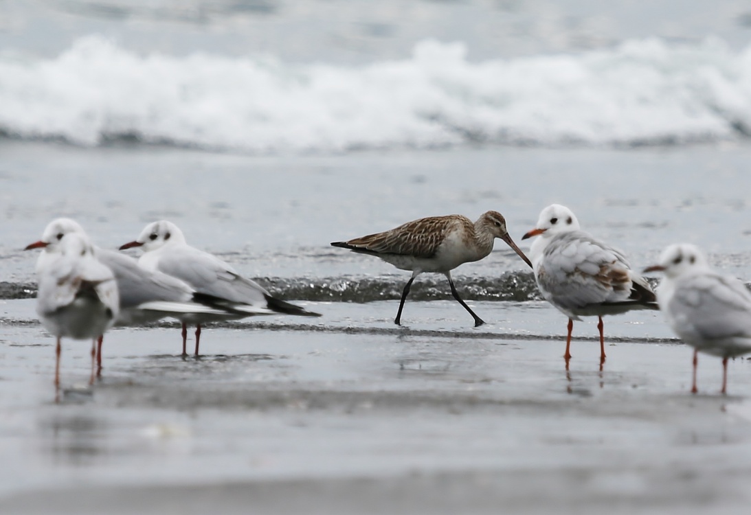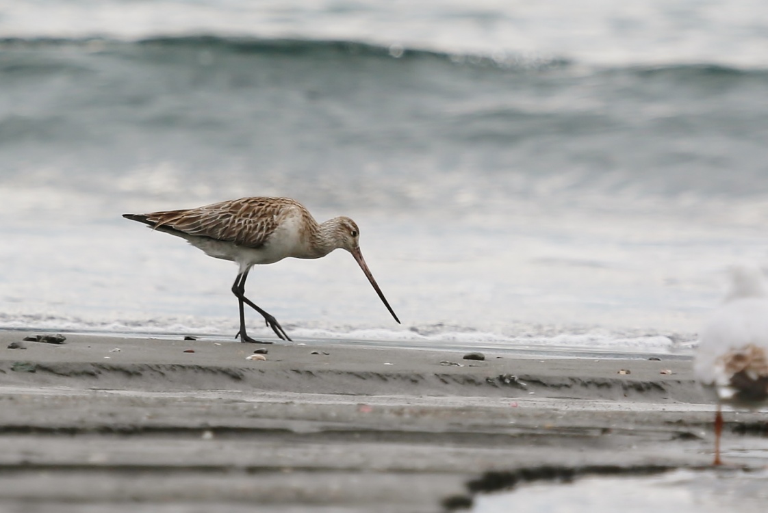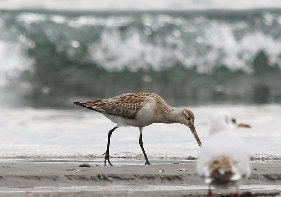 なんて放していると ……波打ち際にいつもと違った鳥が~1羽?