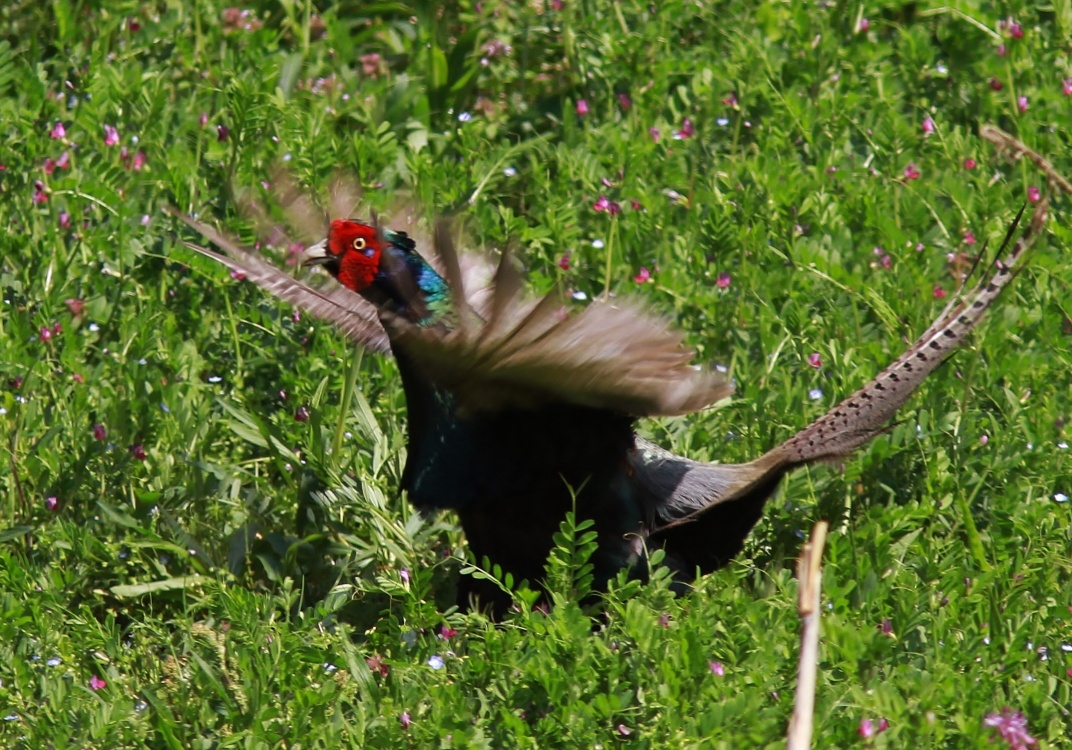 鳥撮りは今朝もダメ! で、又在庫から…キジの♂のおたけびシーンを~♪ 3枚目の雄叫びの~今にも目が飛び出して落ちそうなシーンに注目!~(笑)