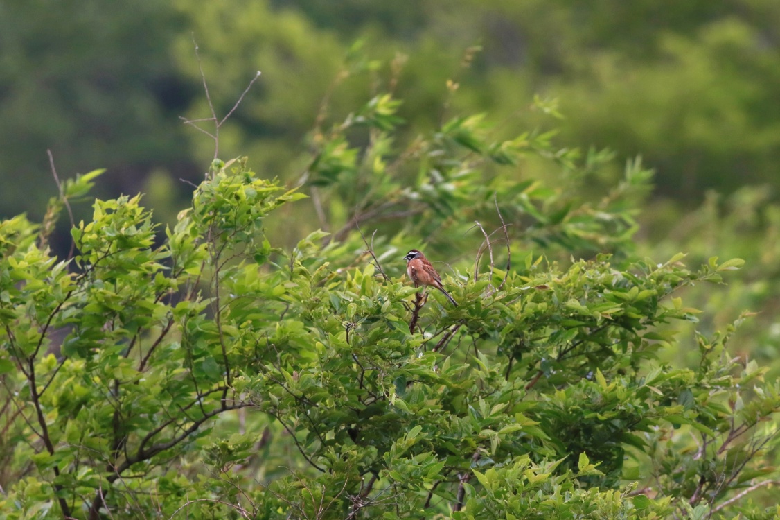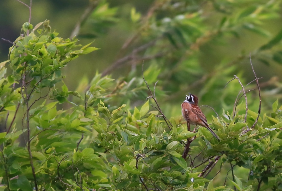 強い風にもまけずオヤジが見かける前には餌捕りもしていたようです・・・ ホオジロも風に負けじと新緑の上で鳴いていましたが~(笑)
