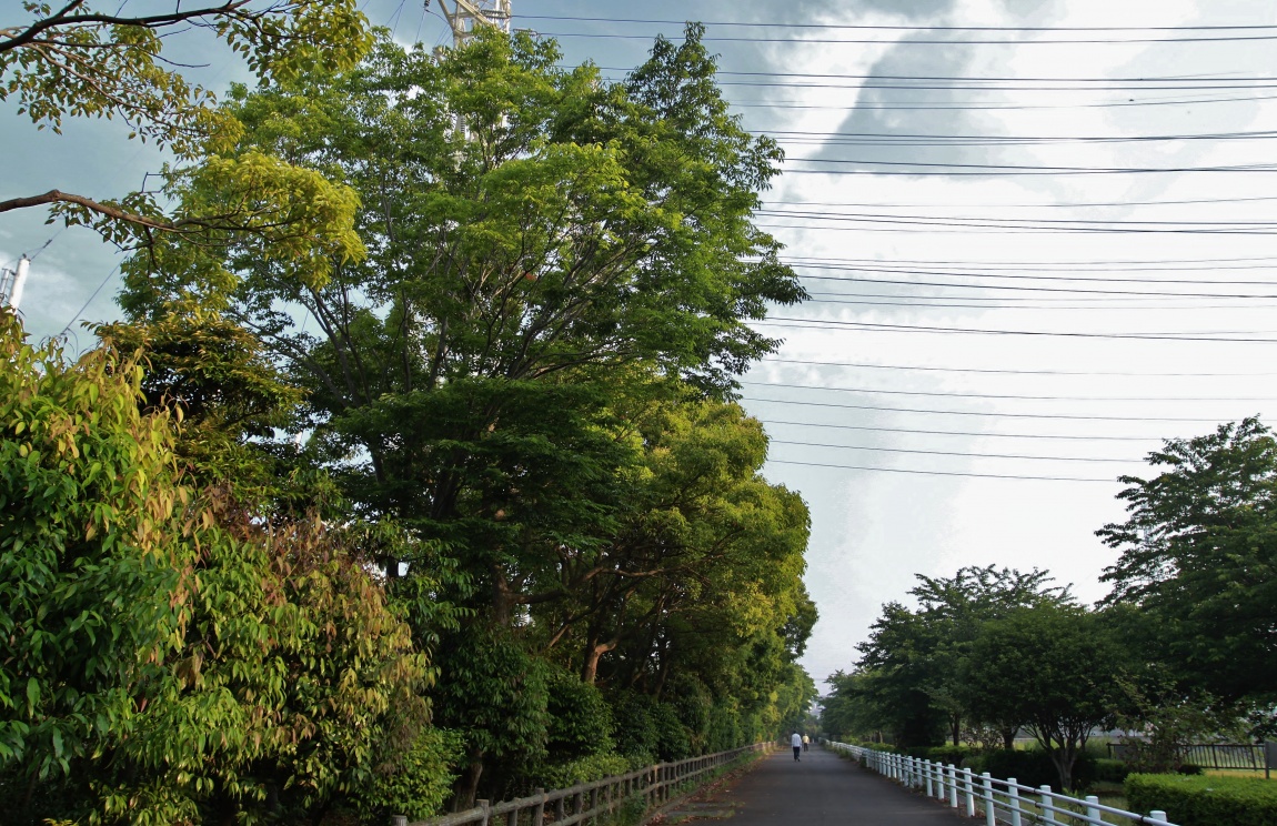 この道は公園に隣接し平行している~桜のヘタの付かない農道で、公園内の遊歩道より人も少なく ……