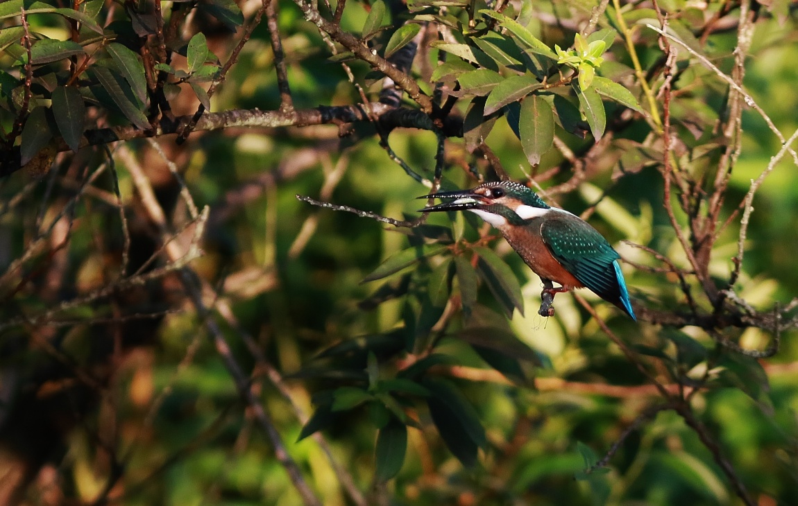 今朝の早朝は珍しく翡翠君を撮ることが出来ました。チョット暗く相変わらず…超”臆病なまさお君の子供達……余り近づけませんから…だいぶ遠くから~♪