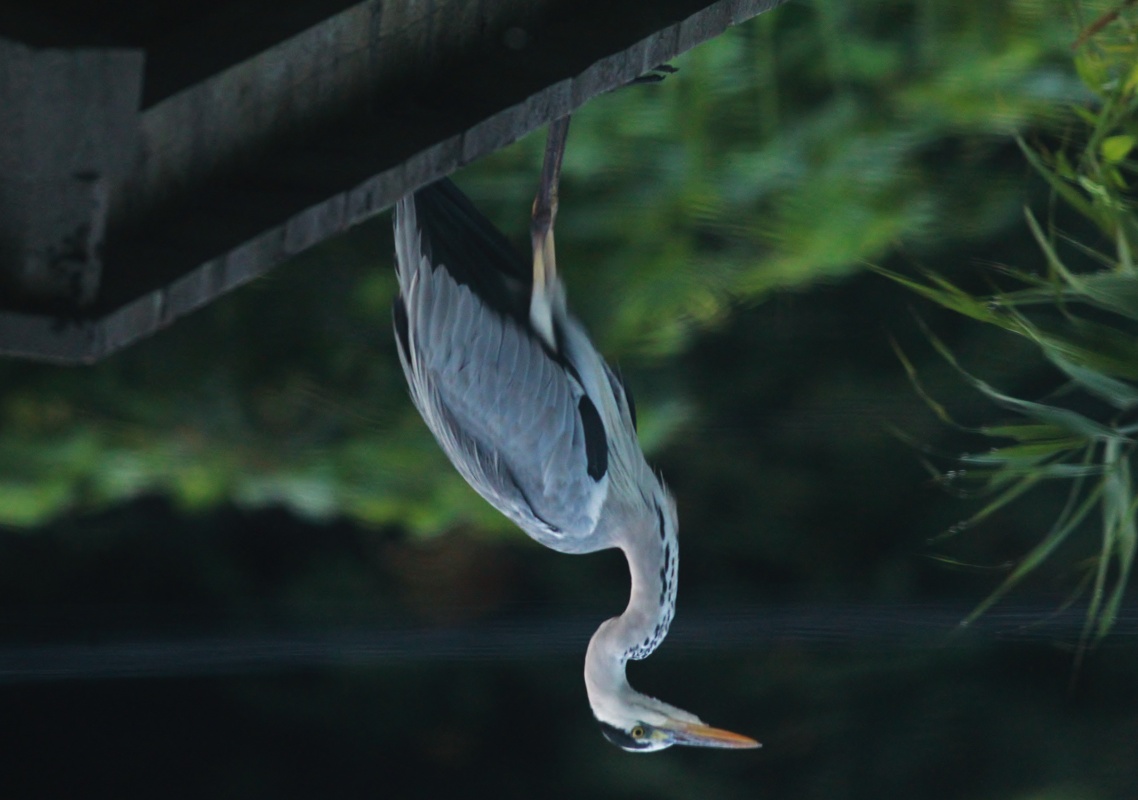 最近公園の小さな池を分捕っている…今朝の若いアオサギ・・・この仔が居ると翡翠君が池に来にくいんですけどぉ~(困)