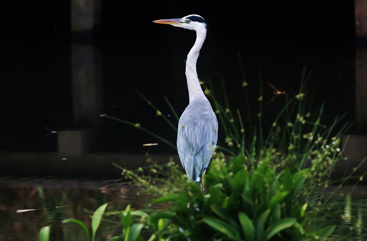 camera[1]今朝の公園の池・・・池の真ん中に咲いたオブジェとアオサギ…生け花のようです!