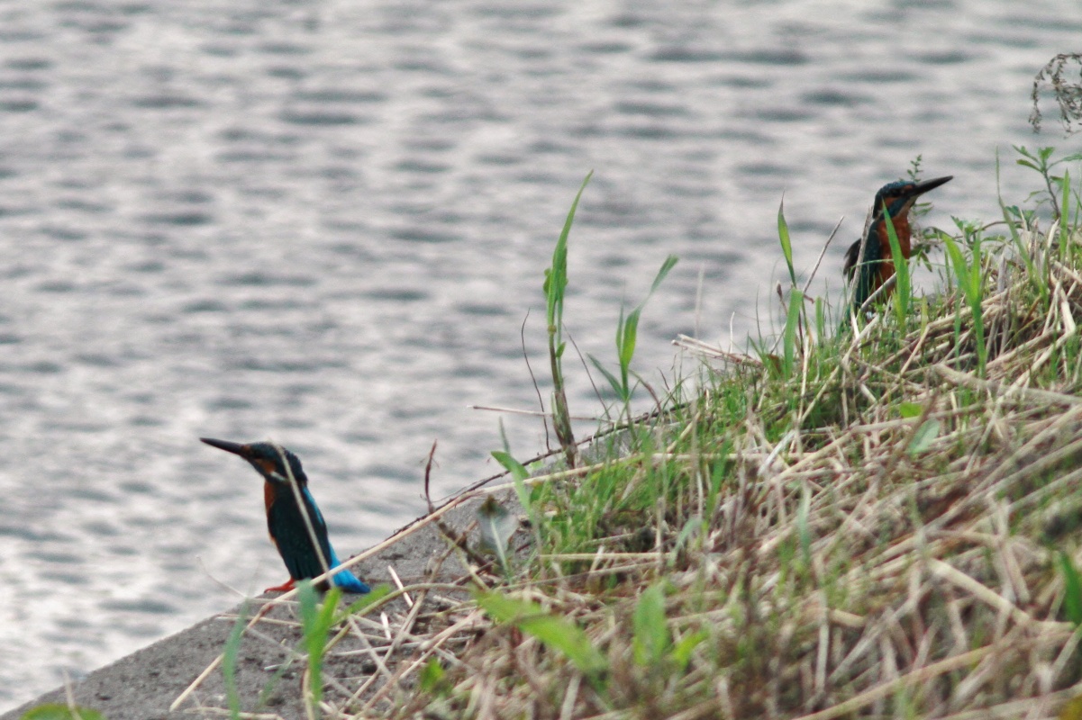 翡翠君2羽が川の方で威嚇し合っていました…多分”兄弟でまさお君の子供なのでしょうけど。片方の仔の足に足環が付いていました・・・