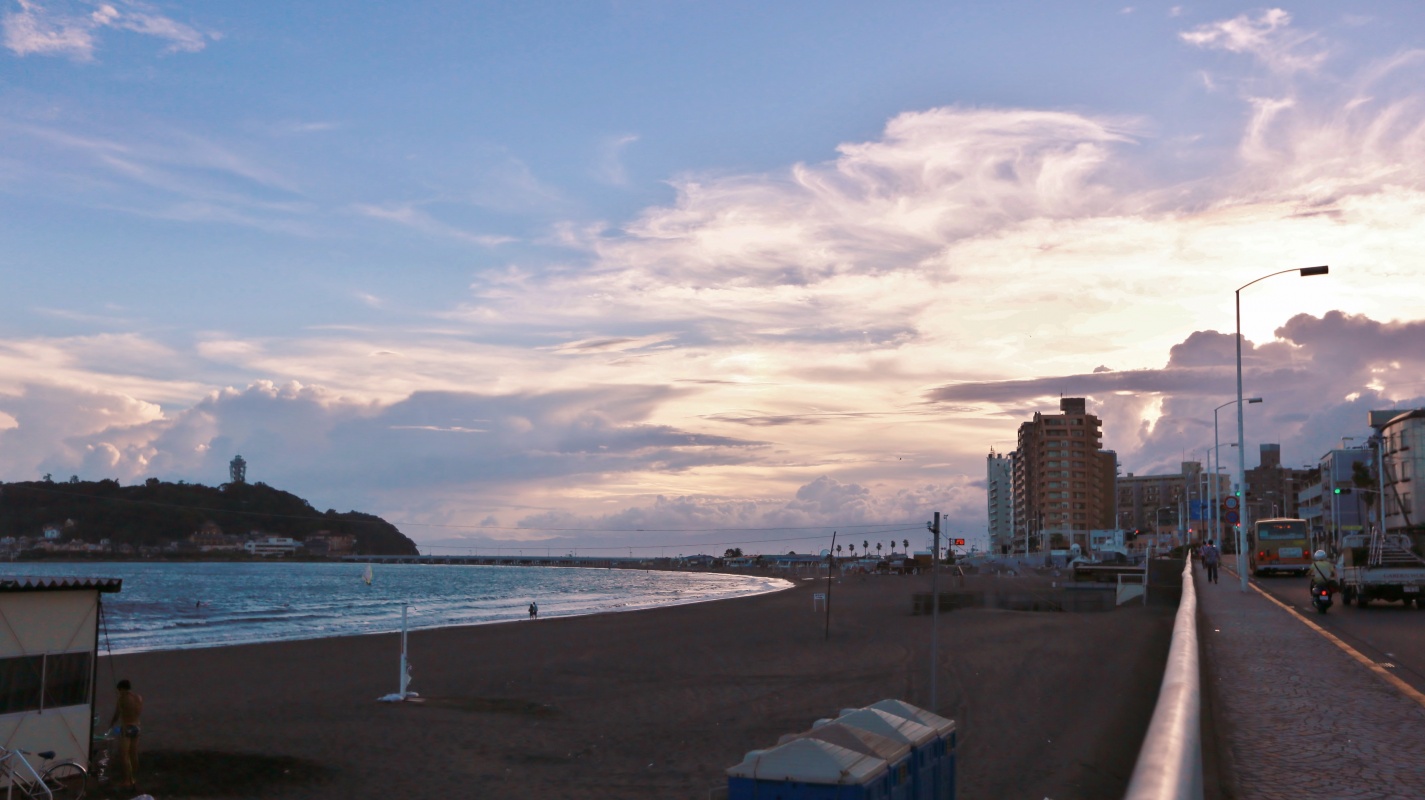 少し涼しかった昨日の夕方は片瀬漁港まで歩いてみました・・・5時過ぎだともうかなり涼しく海岸線は海風で過ごし易い時期になって来たようです。 海の家の解体工事も始りチョット歩き難い事もありますが、学校が始まり人出が