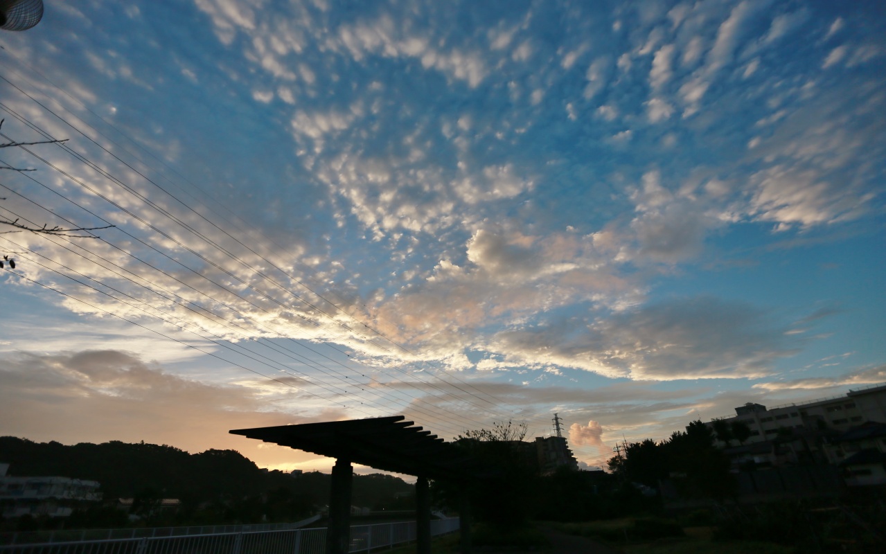 昨日は仕事の関係で早朝は自宅付近をまだ暗い中を散歩~朝焼けの空が鮮やかでした。……台風の影響があったのかもしれまん。