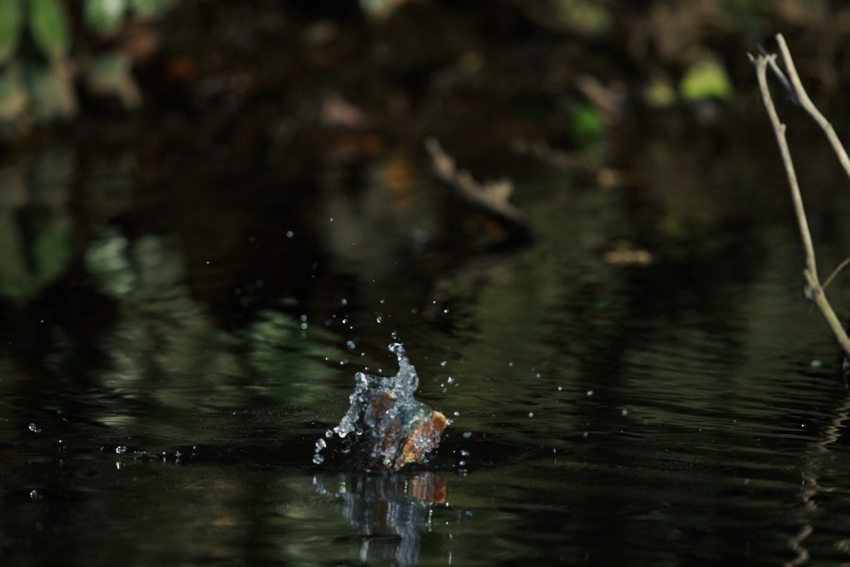 直ぐに諦め帰り際に……ふ”と振り返ると水面にチョット変わった鳥の影……? 近づくと水中に潜った様です!潜った辺りまで行くと~出てきました!