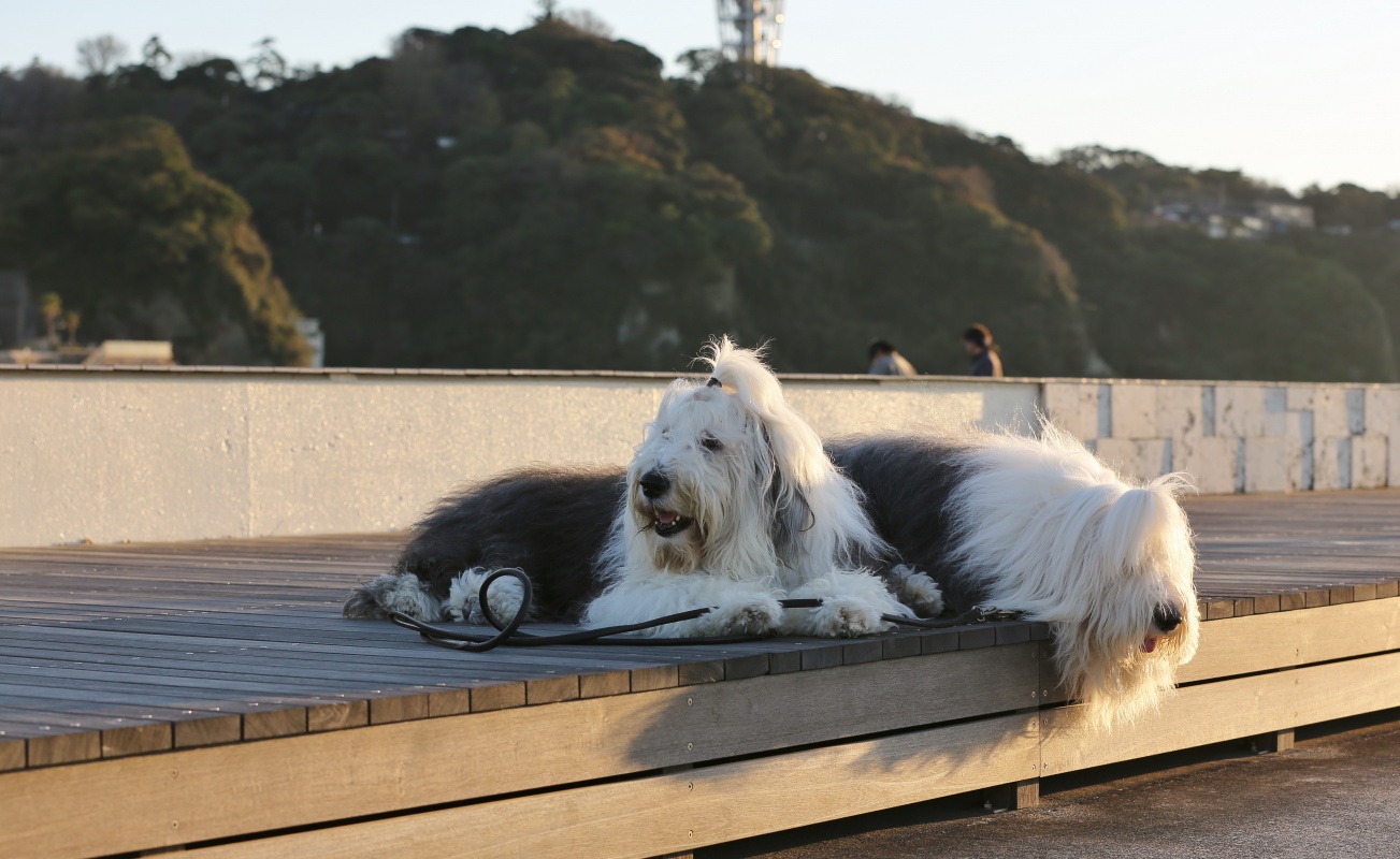 昨日も今日も穏やかな良い天気です~♪ 早朝だけは手がかじかみかなり、冷たかった朝でしたが夕方、4時過ぎの散歩はジャンパーを着ていると少し暑いくらいで片瀬漁港で待ったりと休憩しました。
