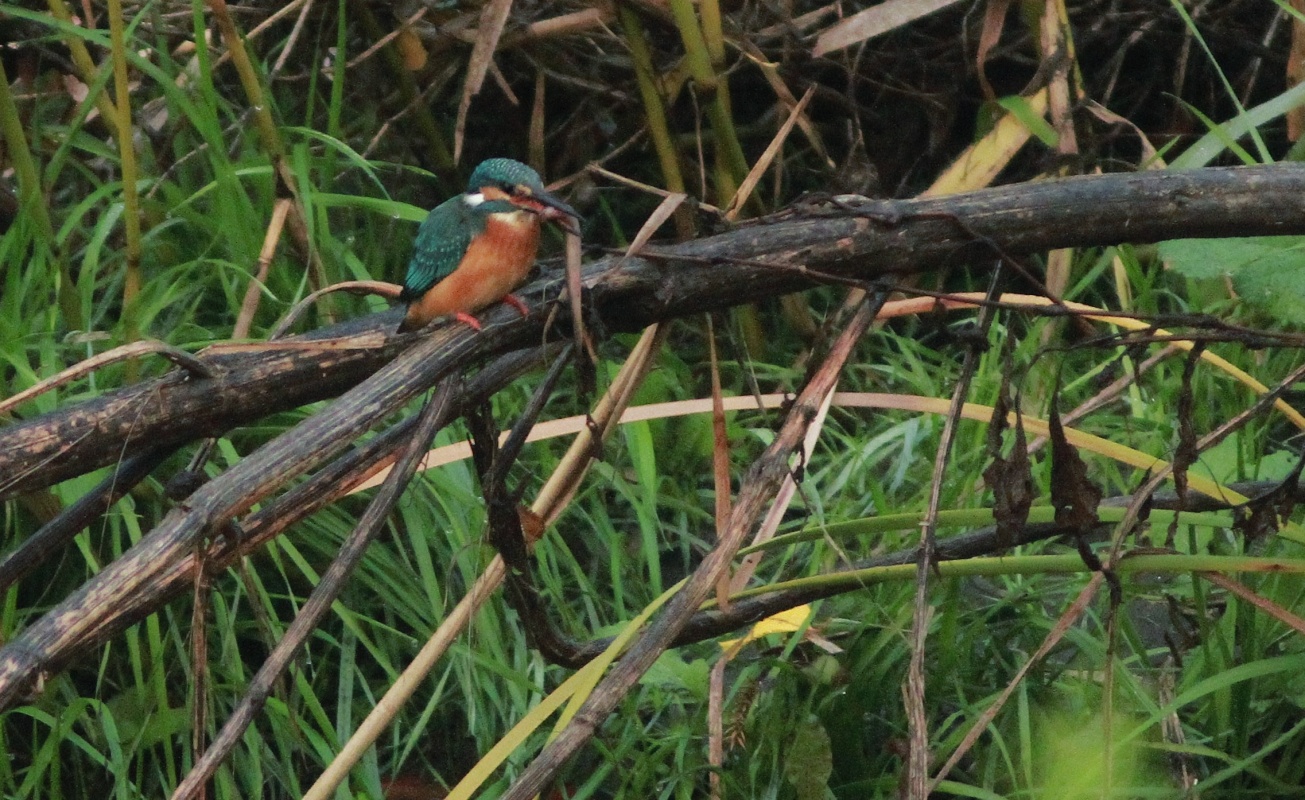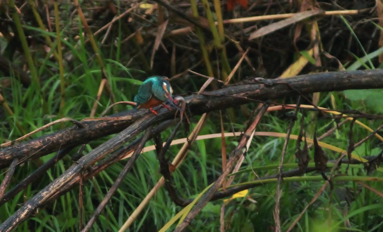中々取れない霧”・・みつお君は対岸で大き目のドジョウを捕まえていました。長いので少し食べるのに苦労してた感じです。~(笑)