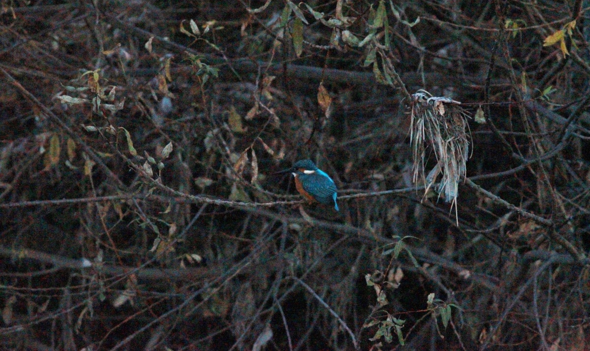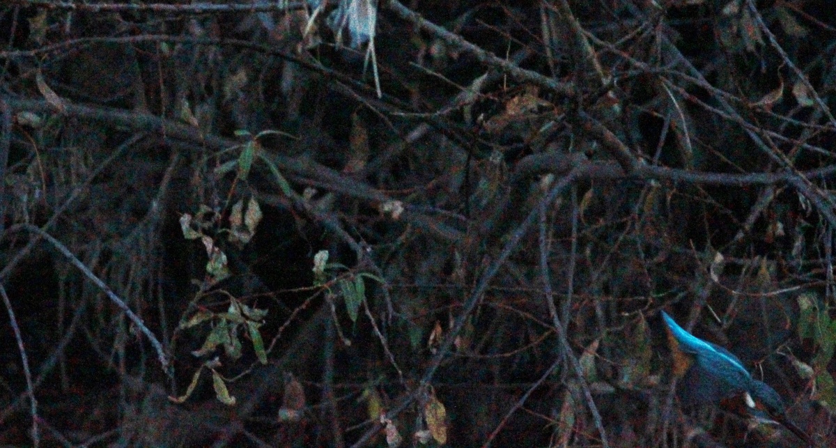 休憩中に~撮ってくれ!…と、翡翠の鳴き声が聞こえ…久々に早朝での鳥撮りを…冷たくて暗い中で頑張っちゃいましたが対岸だし真っ暗”ザラザラ画像の翡翠です~![]()