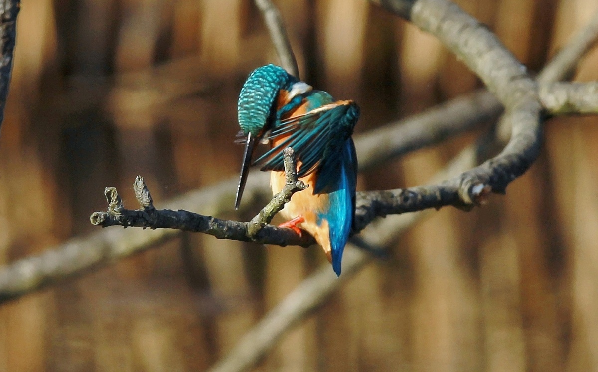 ココから、ほらね!…濡れた体を乾かしながら毛繕いなんかしちゃって~!