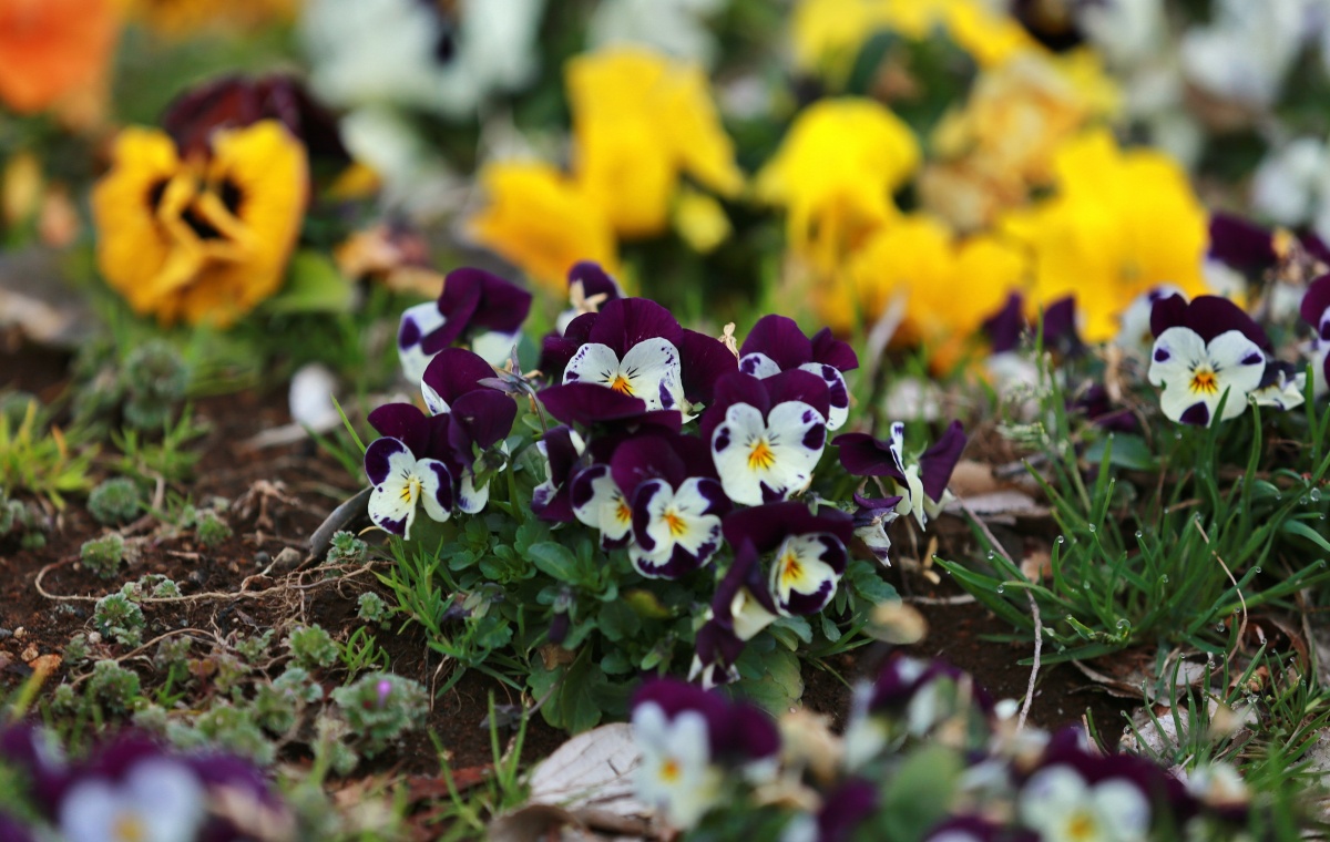 先日の雪で縮こまってぐったりしていた公園のパンジーやビオラもやっと昨日の暖かさと太陽のお陰で元気を取り戻した様です~♪