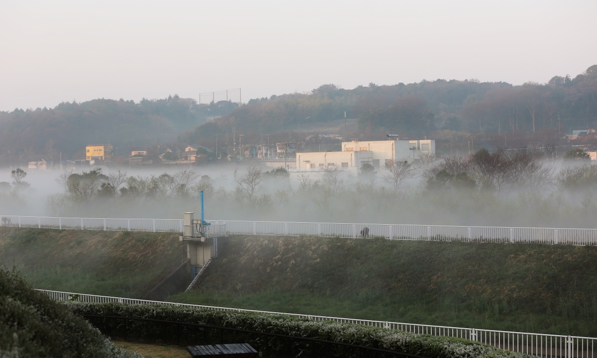 今朝は凄い霧です!予報では早朝から快晴~鳥撮りもバッチリかな?などと期待たのに、公園に着いた頃は一寸先は闇”~(笑) 少し高い場所から見ると雲海が広がった様な幻想的な景色です。