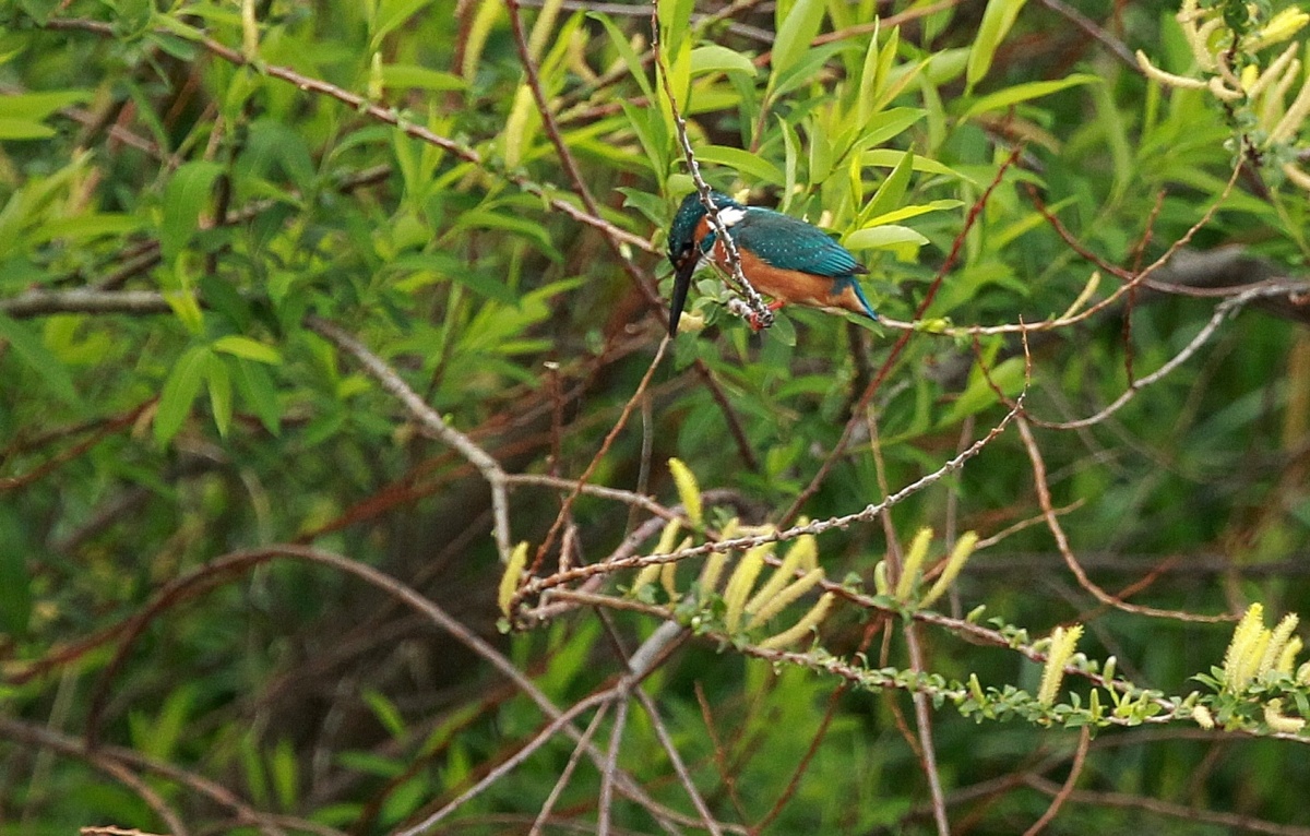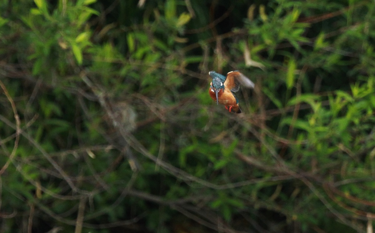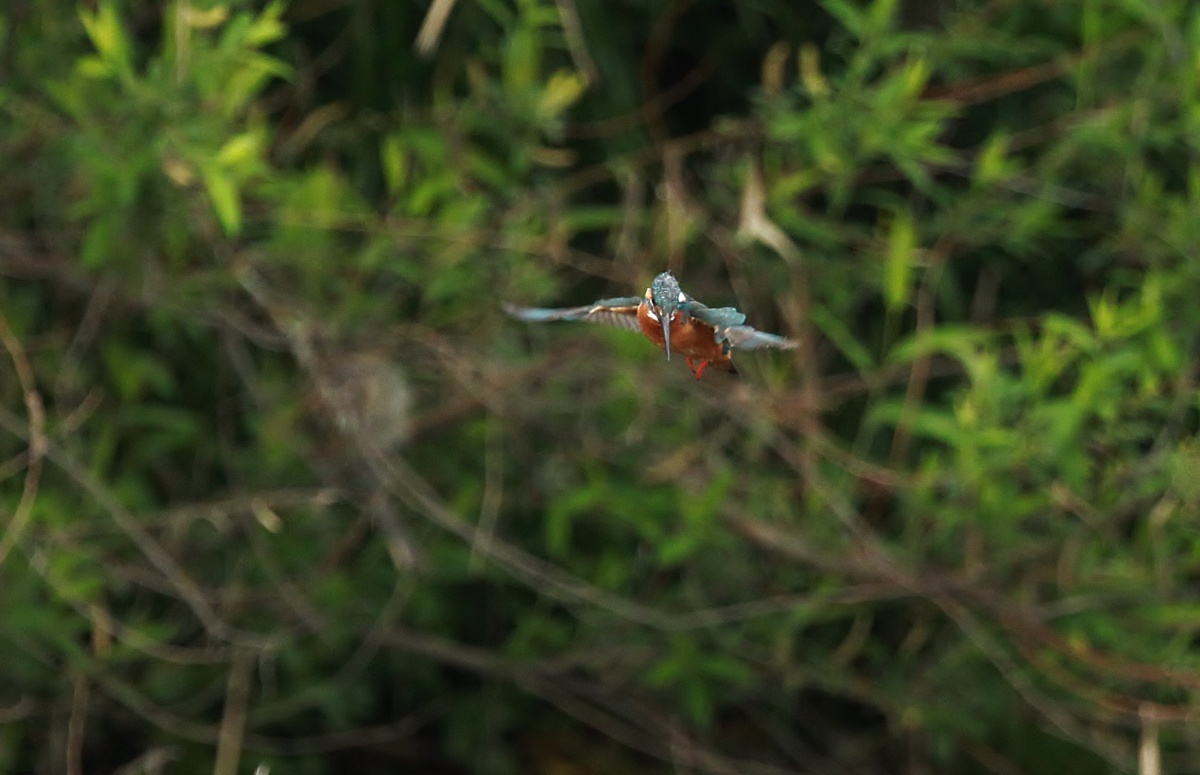 今朝は翡翠のみつお君が少し増水して流れの速い川でお魚とりに苦労していましたが、遠い対岸で久々にほんの一瞬の小さなホバリングも見せてくれました。