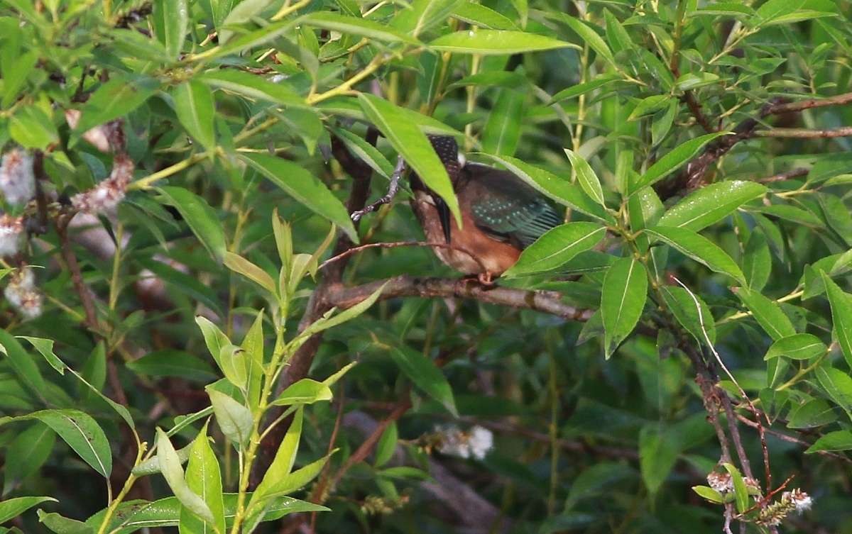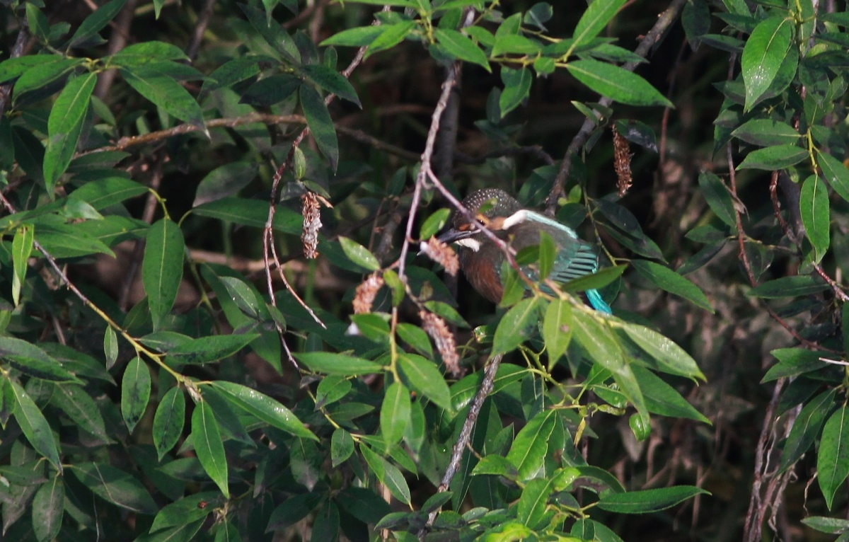 翡翠の雛を見ることが出来ました~♪ 対岸に1羽だけでしたがかなり黒くて、まだ飛び始めたばかりの様な……さかんに川に飛び込む練習をしているようでした~♪