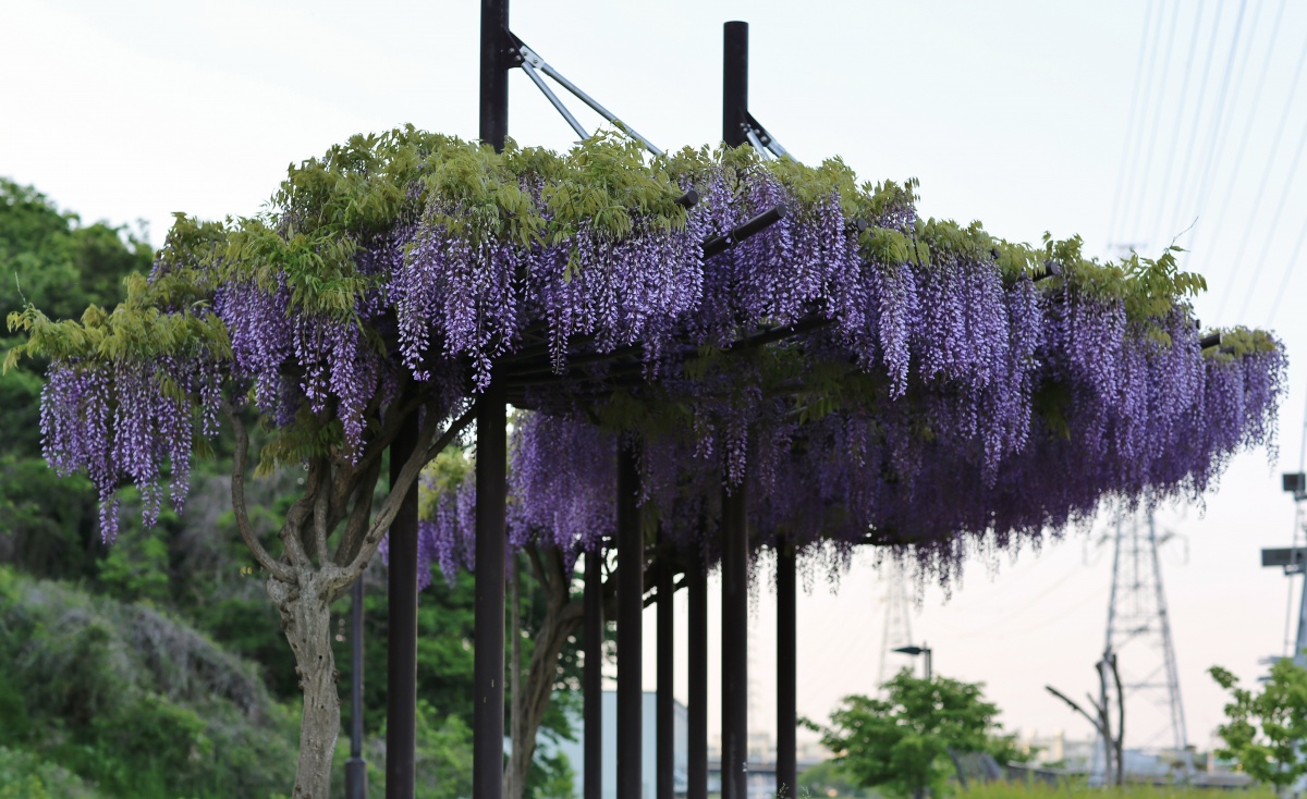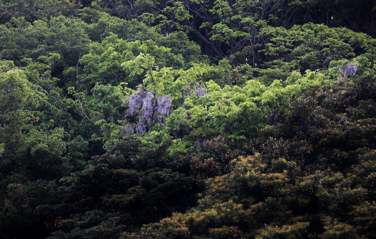 山の中腹に自然の藤の花が立派です~♪