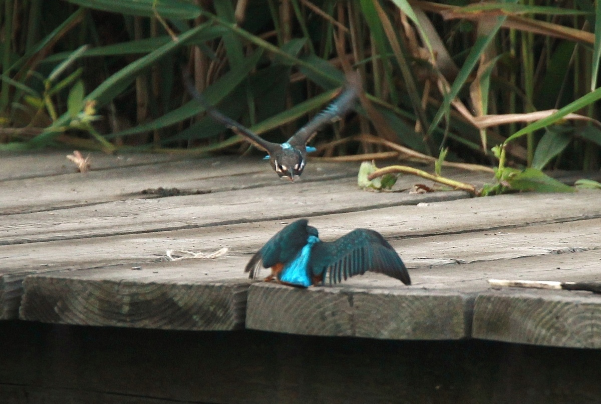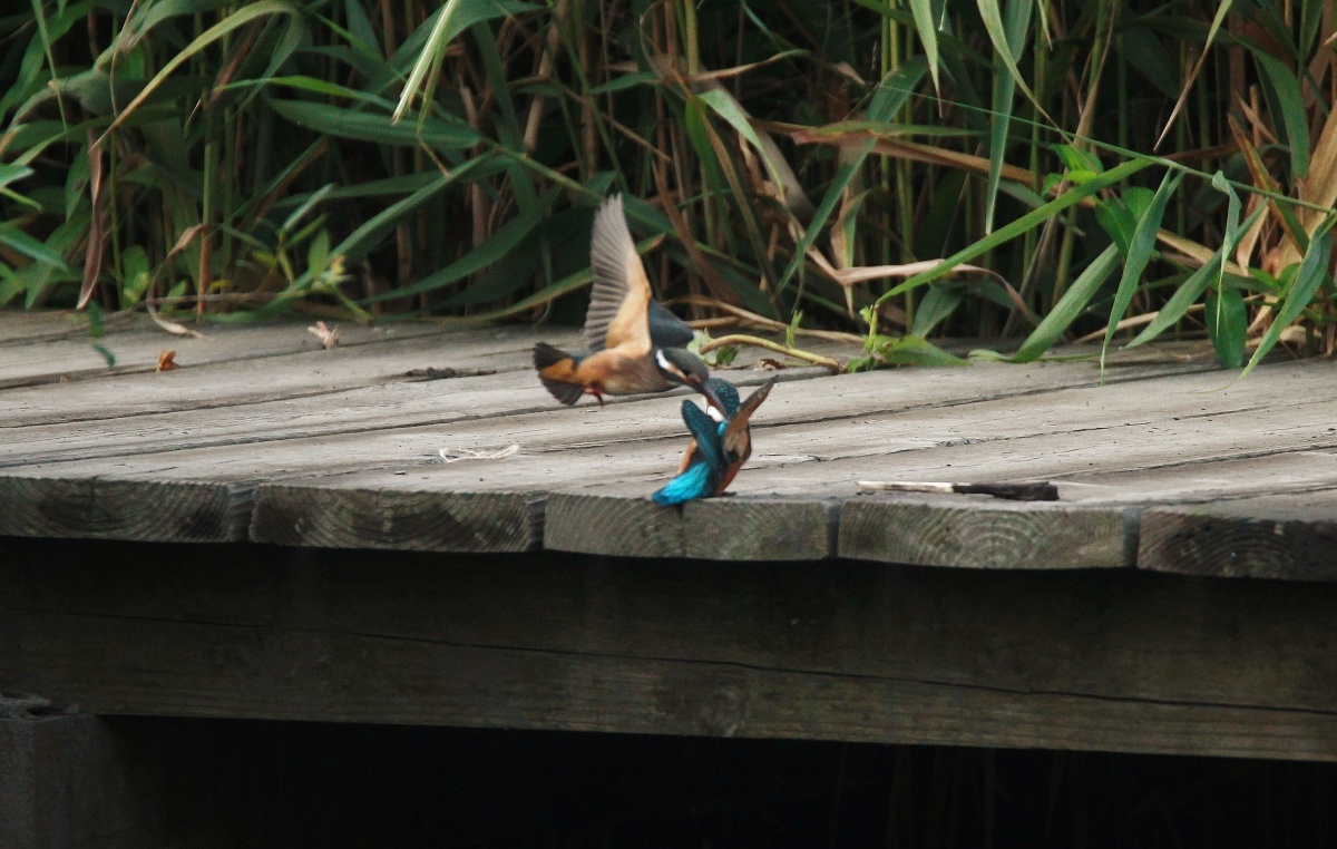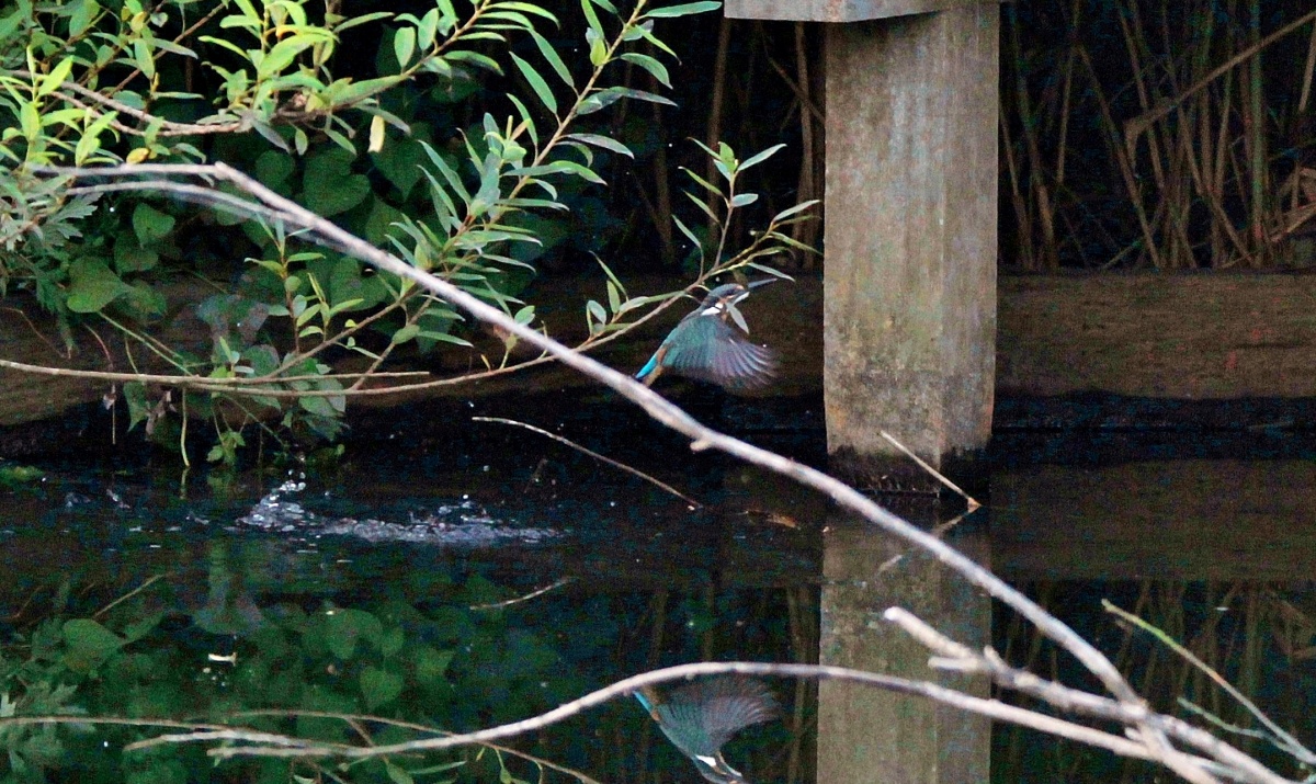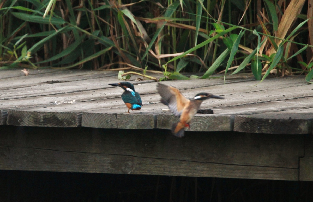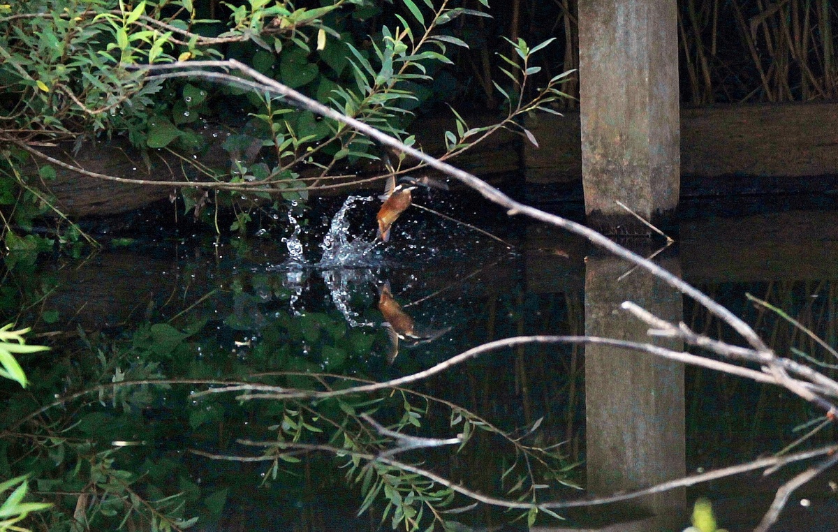 sa2[1]昨日の早朝に久しぶりに翡翠君を公園の池で見かけました。 撮っているともう1羽現れ…どうやら縄張り争いの様ですが……いなずま2羽共まだ若い雛!体も黒ずみ幼さも残っているのにもう縄張りの主張をしあっているようです。