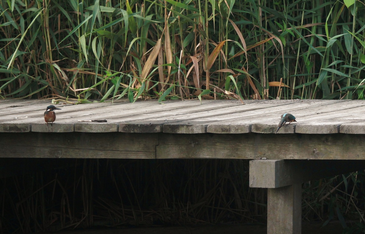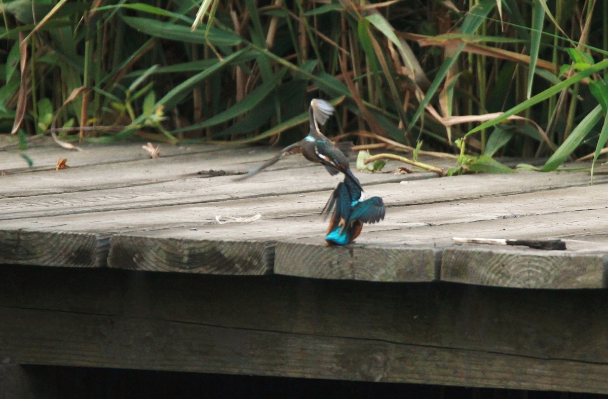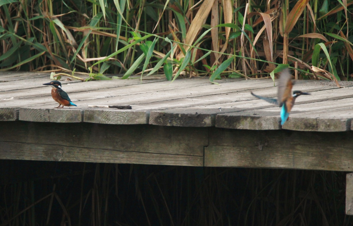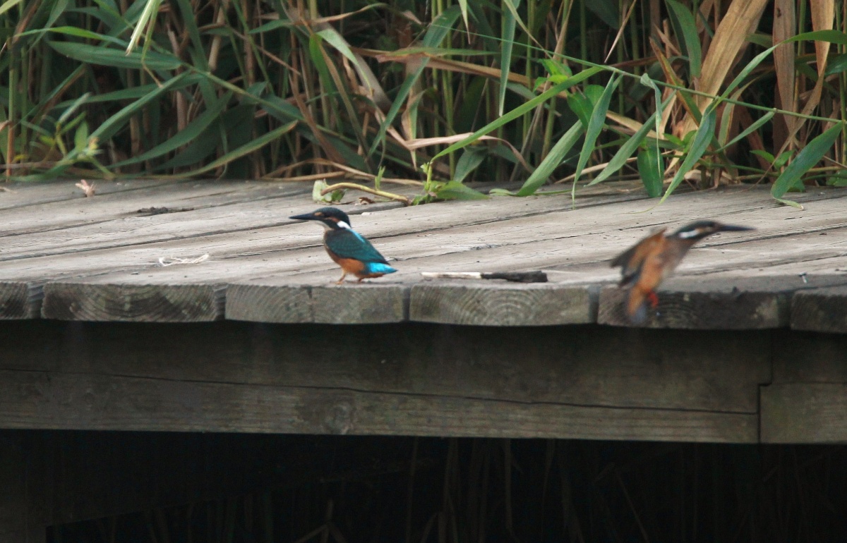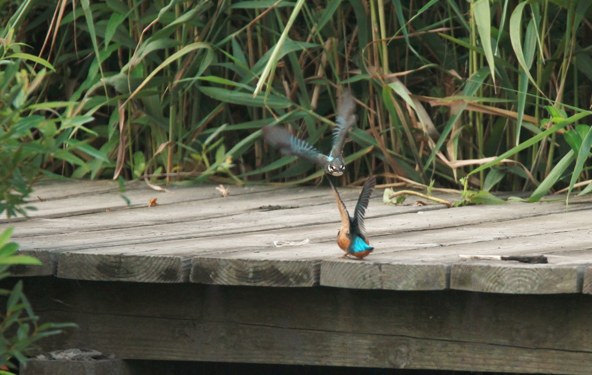 sa2[1]昨日の早朝に久しぶりに翡翠君を公園の池で見かけました。 撮っているともう1羽現れ…どうやら縄張り争いの様ですが……いなずま2羽共まだ若い雛!体も黒ずみ幼さも残っているのにもう縄張りの主張をしあっているようです。