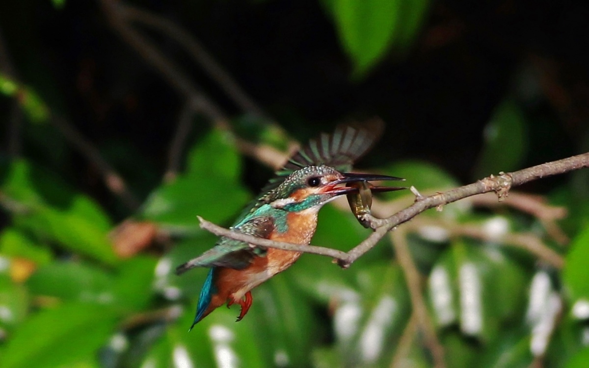 この翡翠もまだ足が黒く~今年生まれて独り立ちした仔のようです。