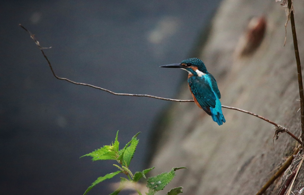 まずは~何時も同じ場所の枯れた細い枝が大好きな親翡翠♂!(みつお君?)