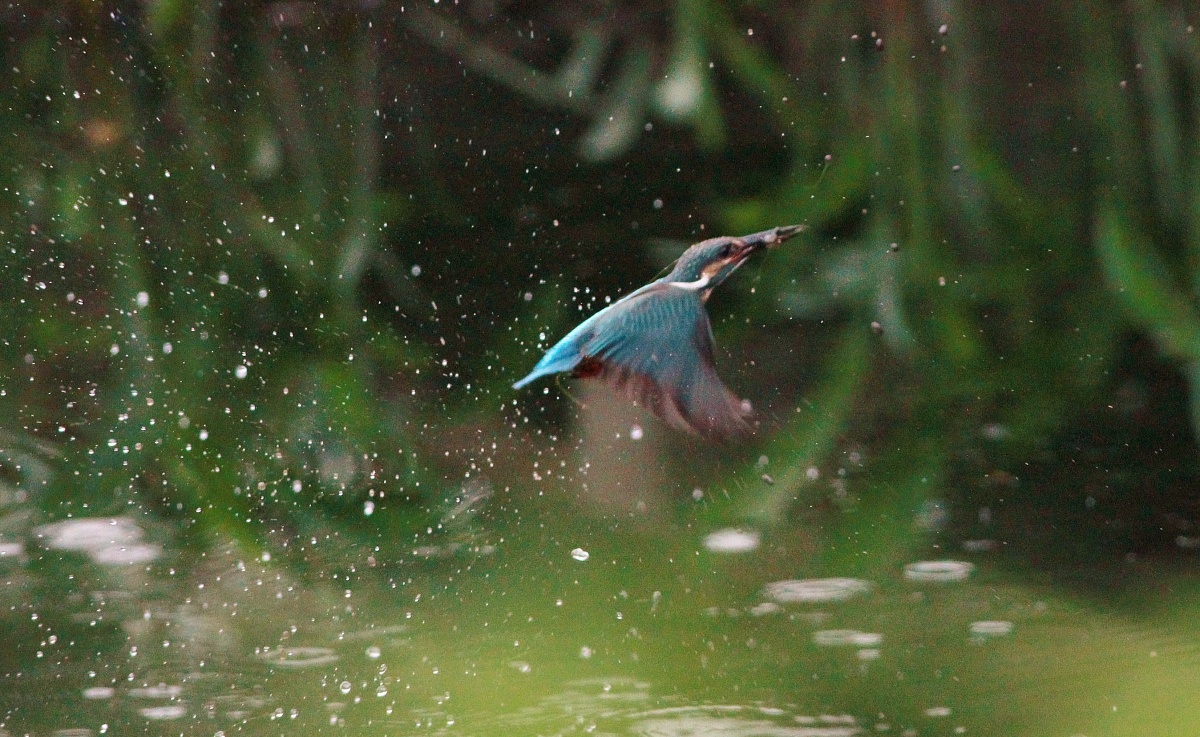 以前時々見かけた~まだ幼い翡翠の雛が、この場所が縄張りの雌♀の翡翠と池で対等に居座って居ました!