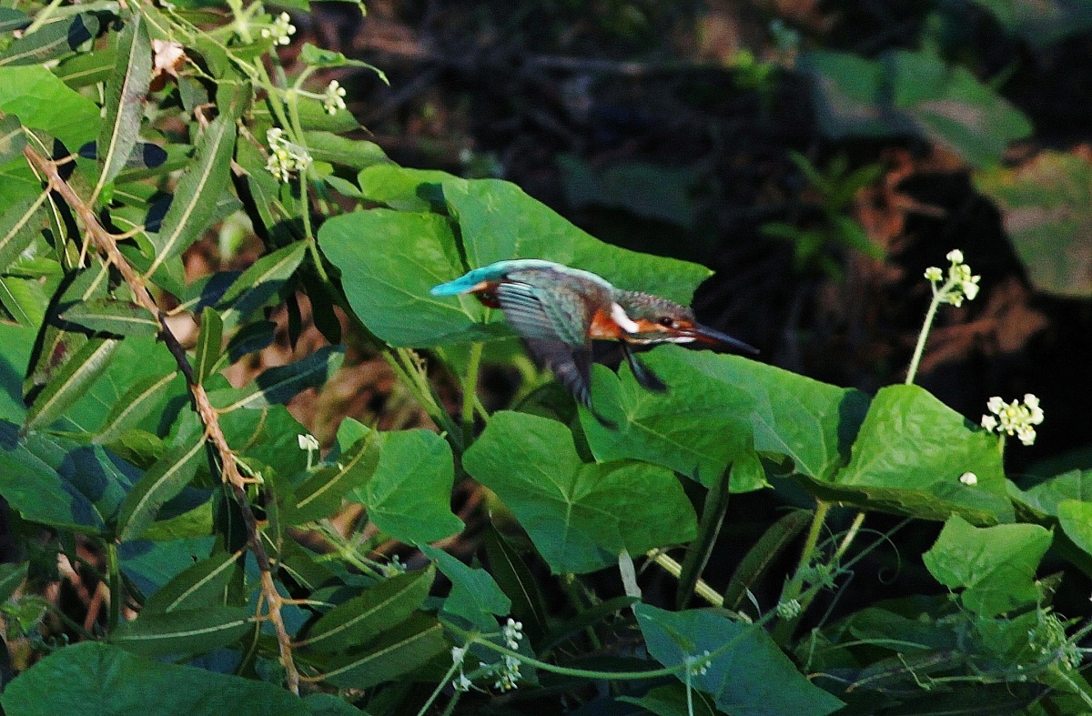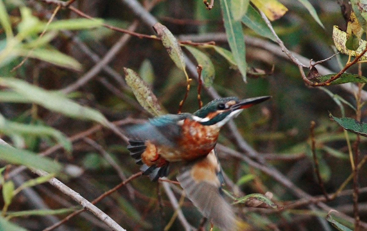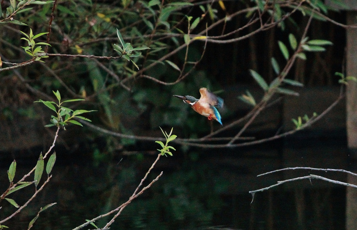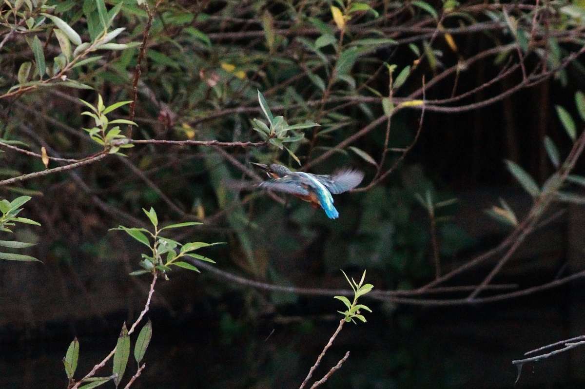 今朝の翡翠君♀~池に行ったり川に行ったり木の間に入り込んだりと飛びまわって…その度に移動~結構”運動になります~(笑)