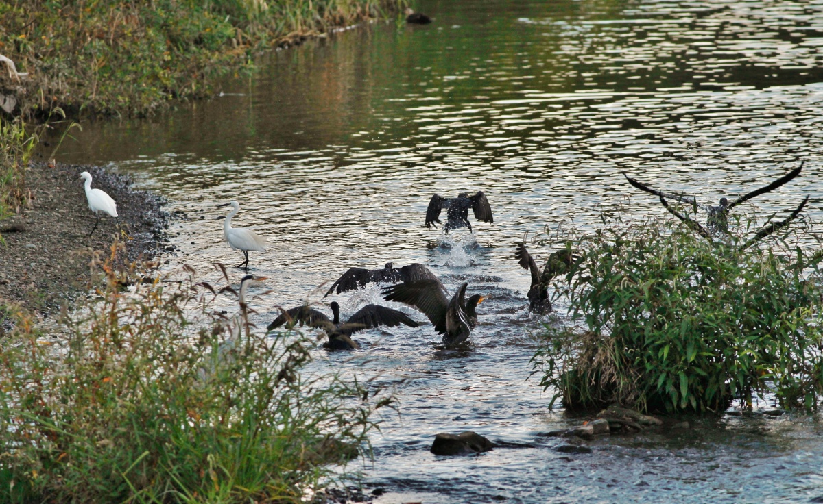 syatyou[1]親水公園って適度の森と川と、植樹された柳の木が多いせいで、かなり色々な種類の鳥が飛来します。  川辺を見渡すと多いときにはかなりの種類の鳥達が見られ、いなずまバードウォッチングがてらの散歩やジョギングの方も多い様です。