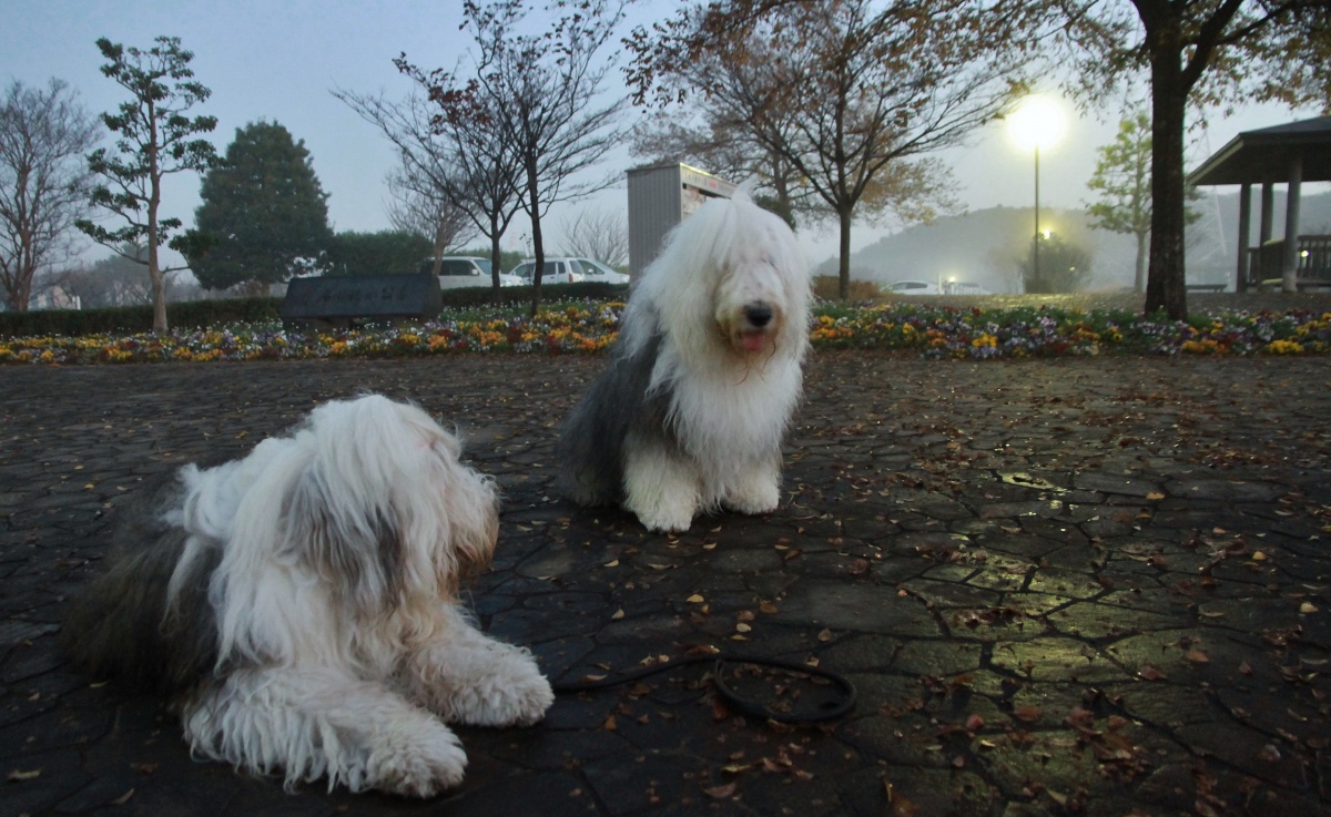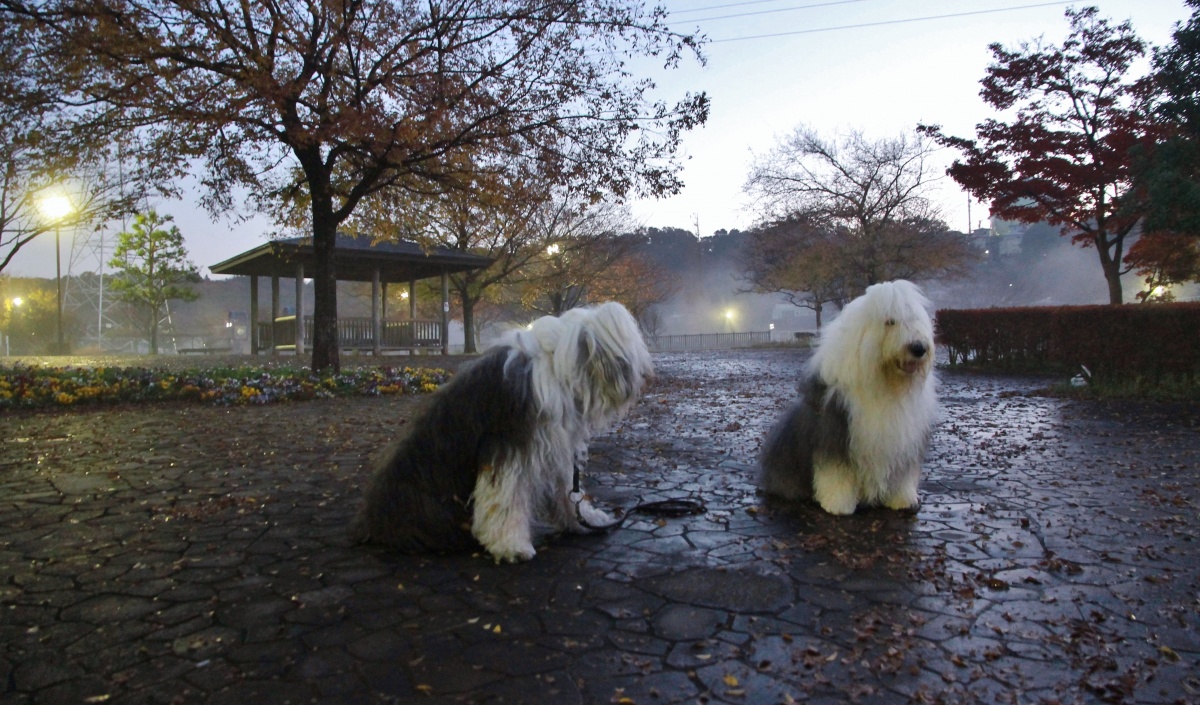 昨日は雨で一日中~自宅待機だったワン達!今朝は雨が上がっても何処もまだびしゃびしゃな道…少し抵抗がありましたが早朝散歩には勿論”行きました。