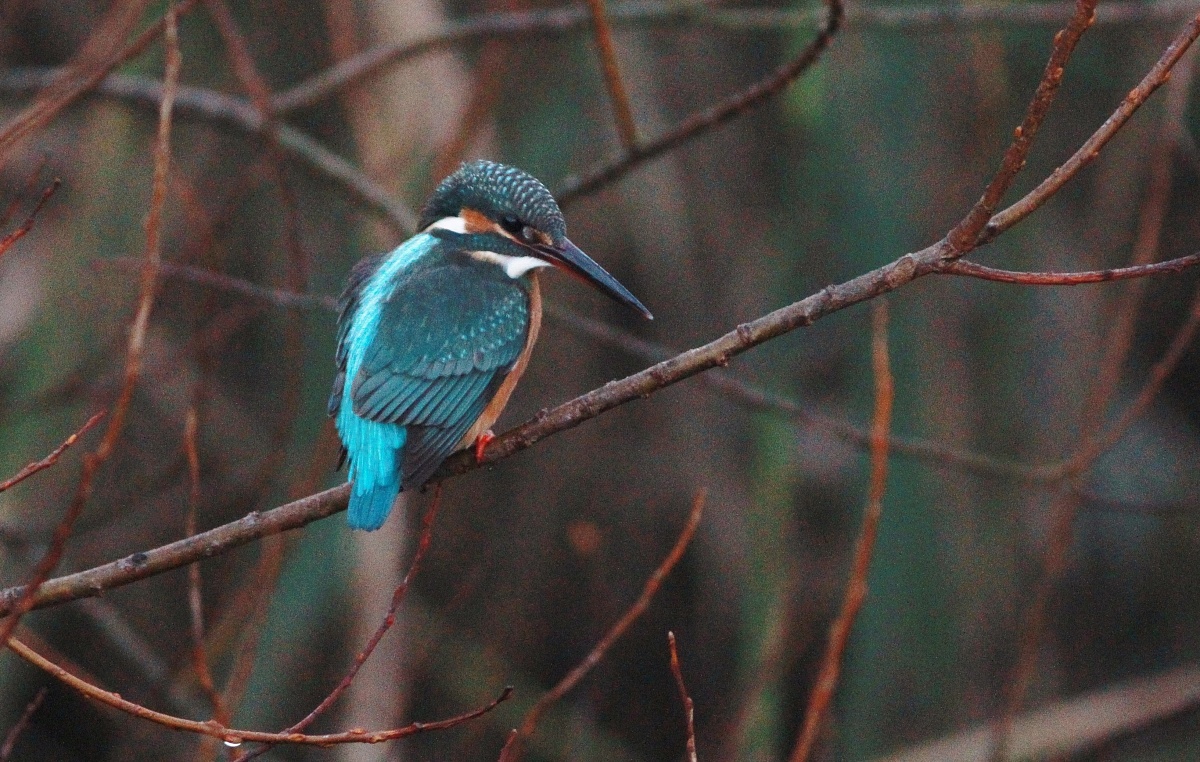 昨日の早朝のとび子さん(翡翠♀)……霧のせいで暗かった鳥撮りです。