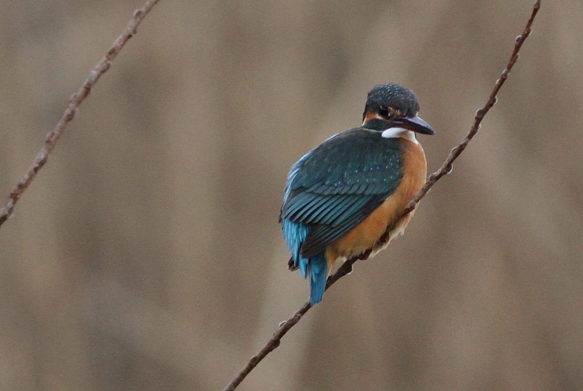寒さを我慢しながらチョコット”鳥撮りも……~サービスのい~いとび子(翡翠♀)はほんの15分でも現れてくれましたが、凍った池では餌捕りも出来ずに直ぐに川に戻って行きました。