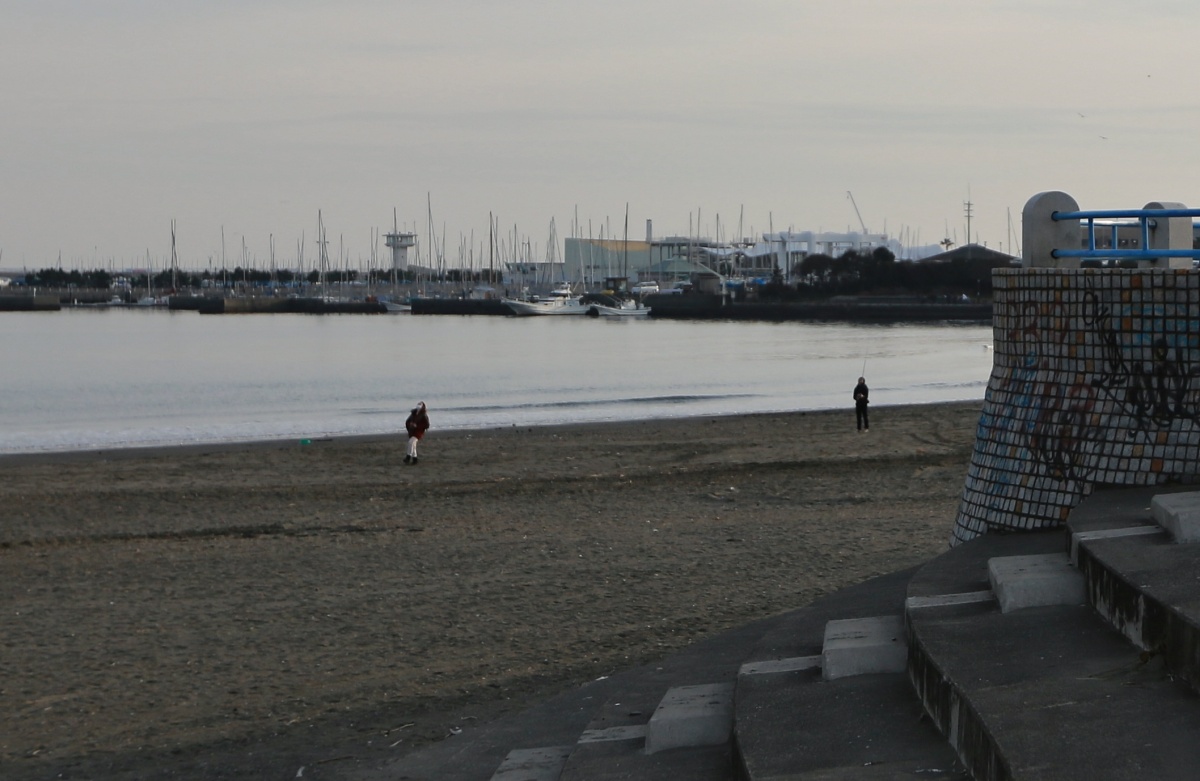 午後の散歩で、風も全くと言っていいほど暖かな江の島の袂で休憩していると~砂浜で…最初は釣りをしているのかと思っていた女の子2人組…良く見ると~