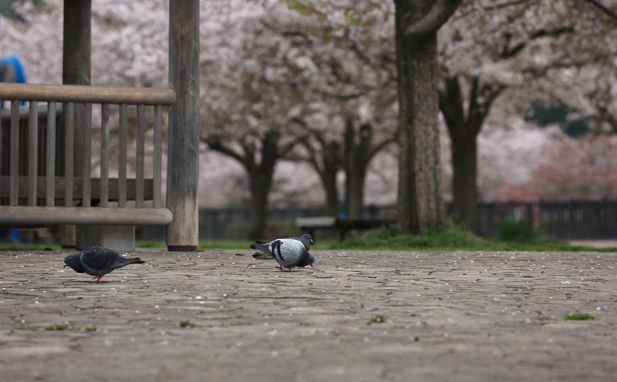 今朝は昨日の風と雨とで桜もかなり散って、八重桜の花まで結構”散り始めていました…公園の長いほうの散歩コースは昨日より又更に桜のヘタが落ちて歩けるのは足回りのコートの短いワン達だけでしょう~。