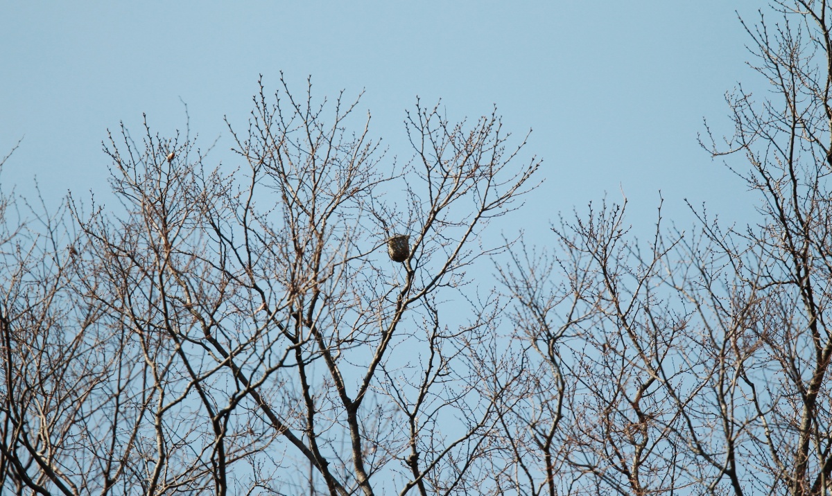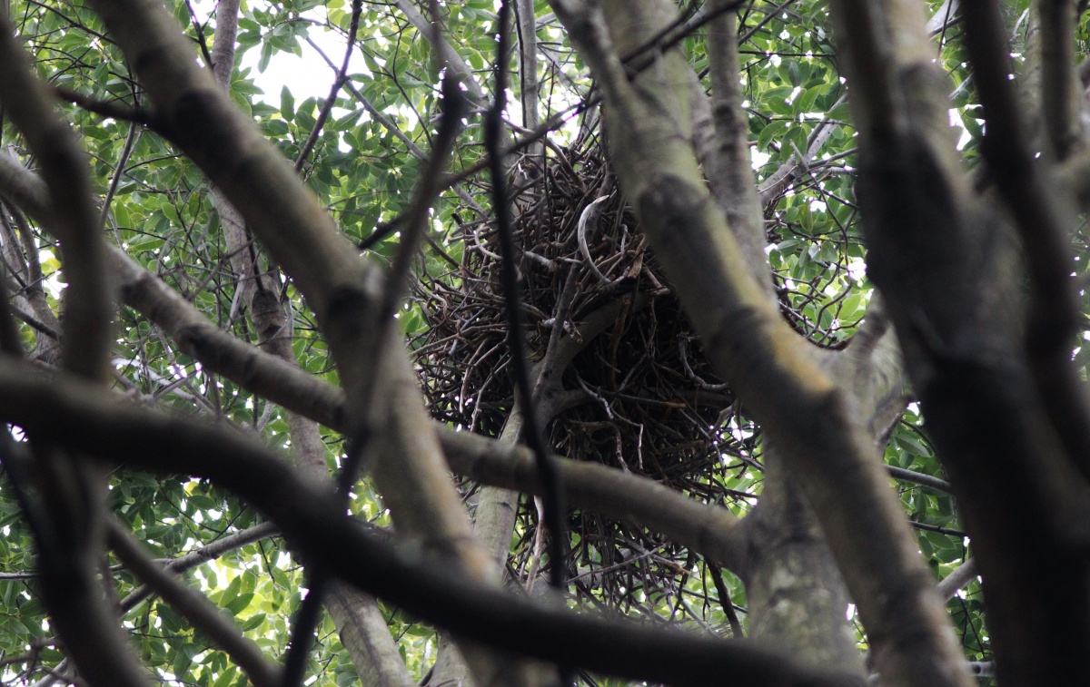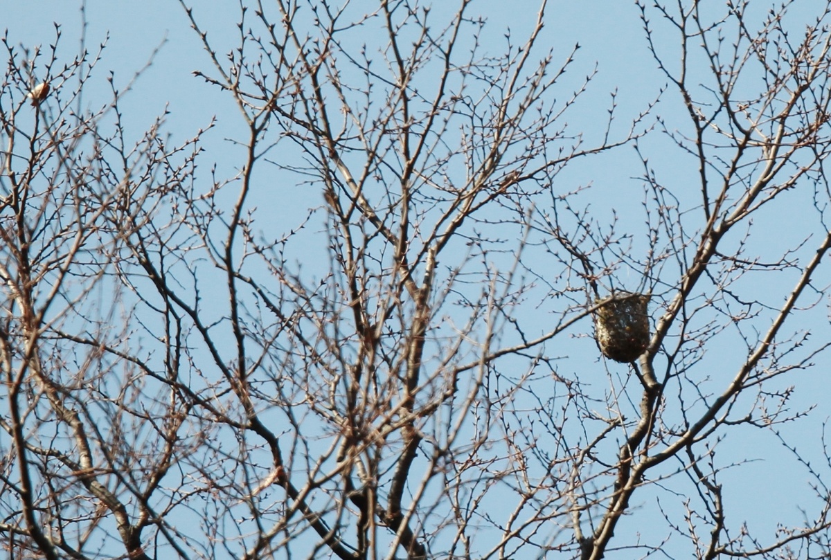 この下の写真の某公園の巣?も少し前に撮ったものですが、物凄く高い木の天辺付近に籠のように編んだ感じの、珍しい巣?……