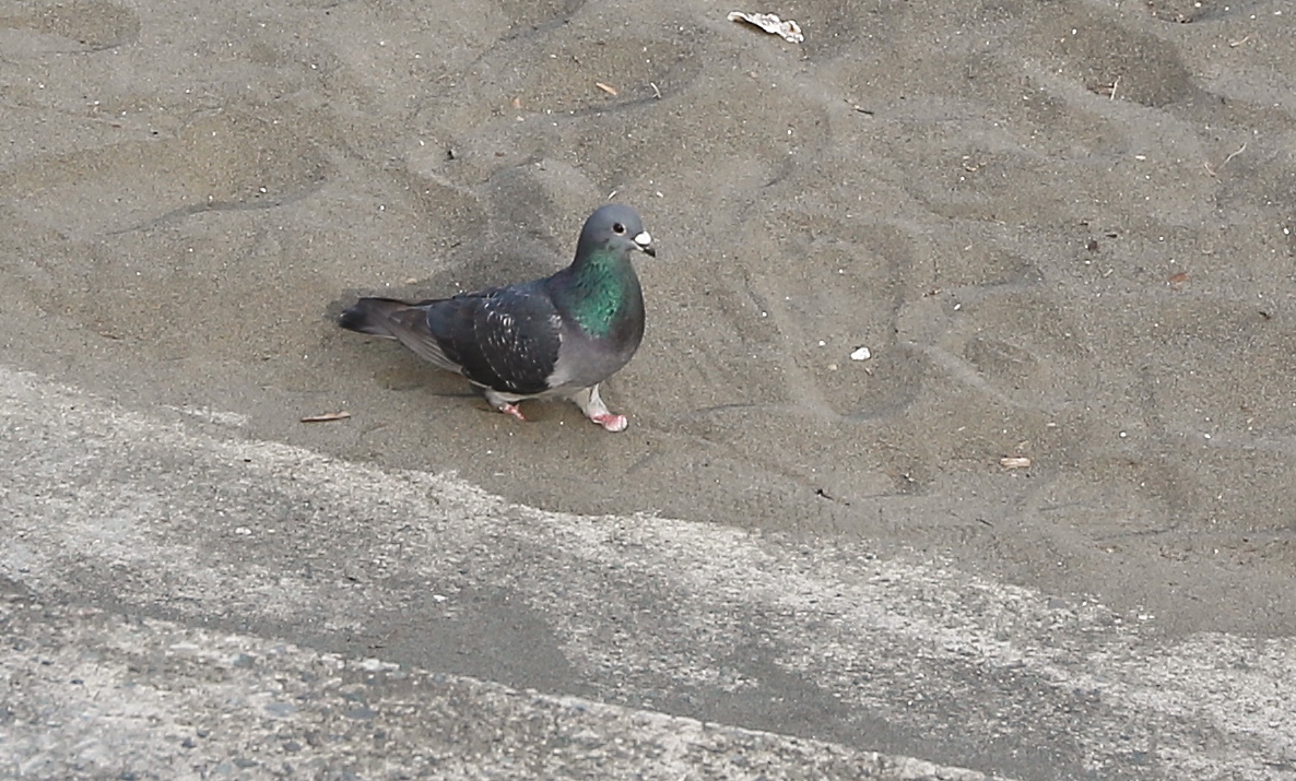午後の海岸での散歩で久しぶりに~あの両足が足首から失ってしまった、人なつっこい鳩を見ることができました~♪