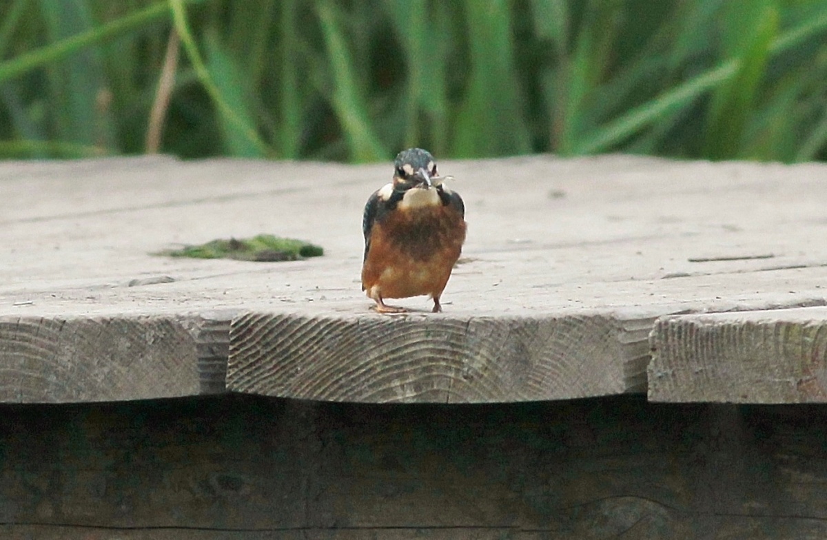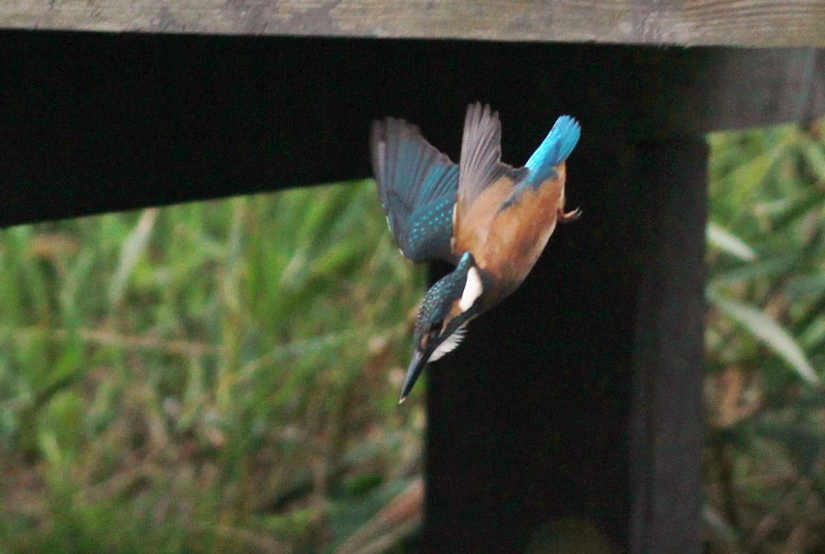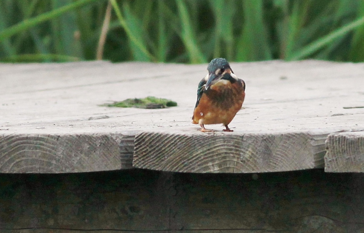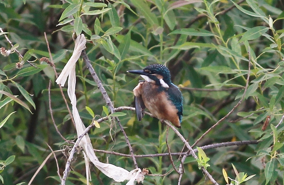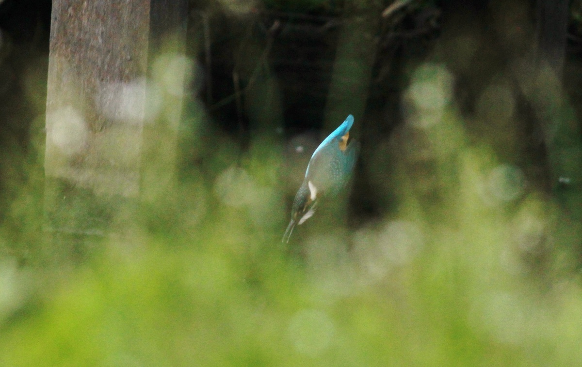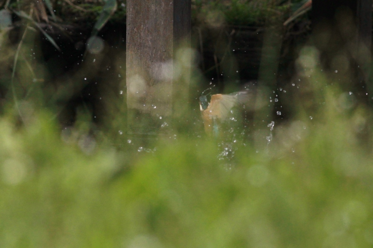 今朝は翡翠の雛が池にいました。まだ嘴も凄く短くて親から離れたばかりの雛で雄親が連れてきた様です。(多分”とび子さんの子供!)