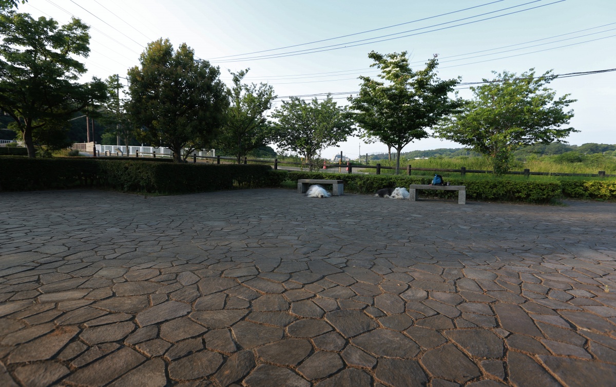 今朝の早朝もだいぶ暑くなってきて、散歩後のまだ日陰での休憩はワン達はほんとに~まったりし過ぎの感のある休憩です。