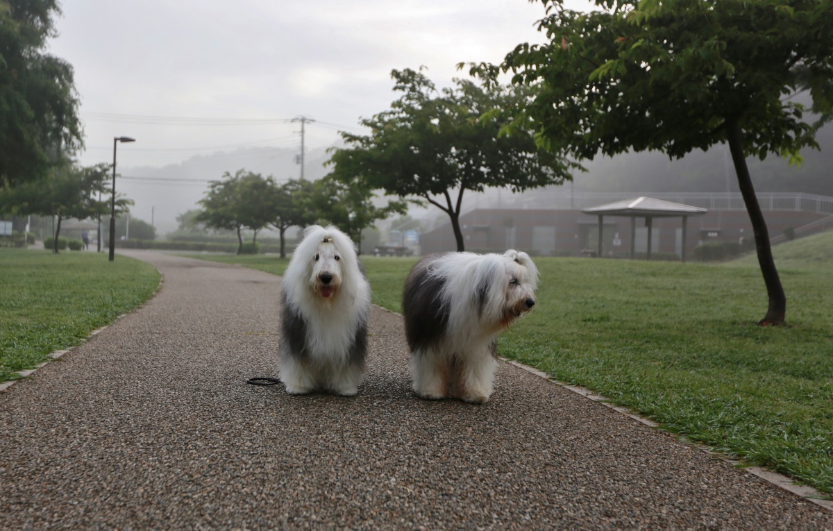 今朝の早朝は凄い霧で公園を廻った後はワン達のコートの表面はグッショリに~…… (一昨日~シャンプーしたばっかりなのに!…汗”)