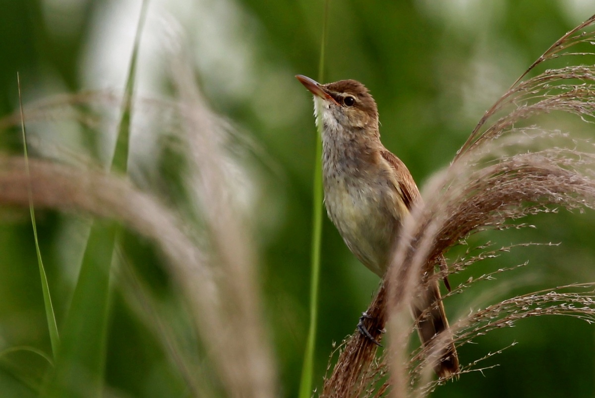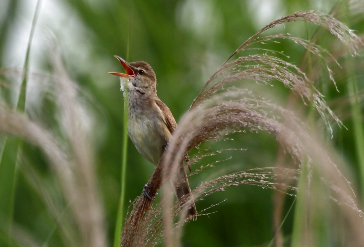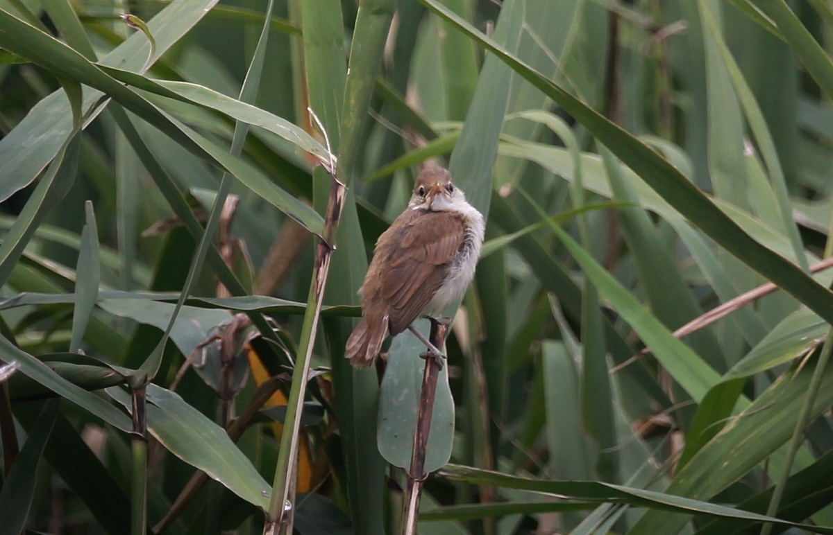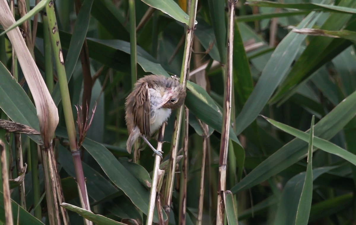 だいぶ大きくなっても、未だ餌をねだっているオオヨシキリの雛と成鳥~