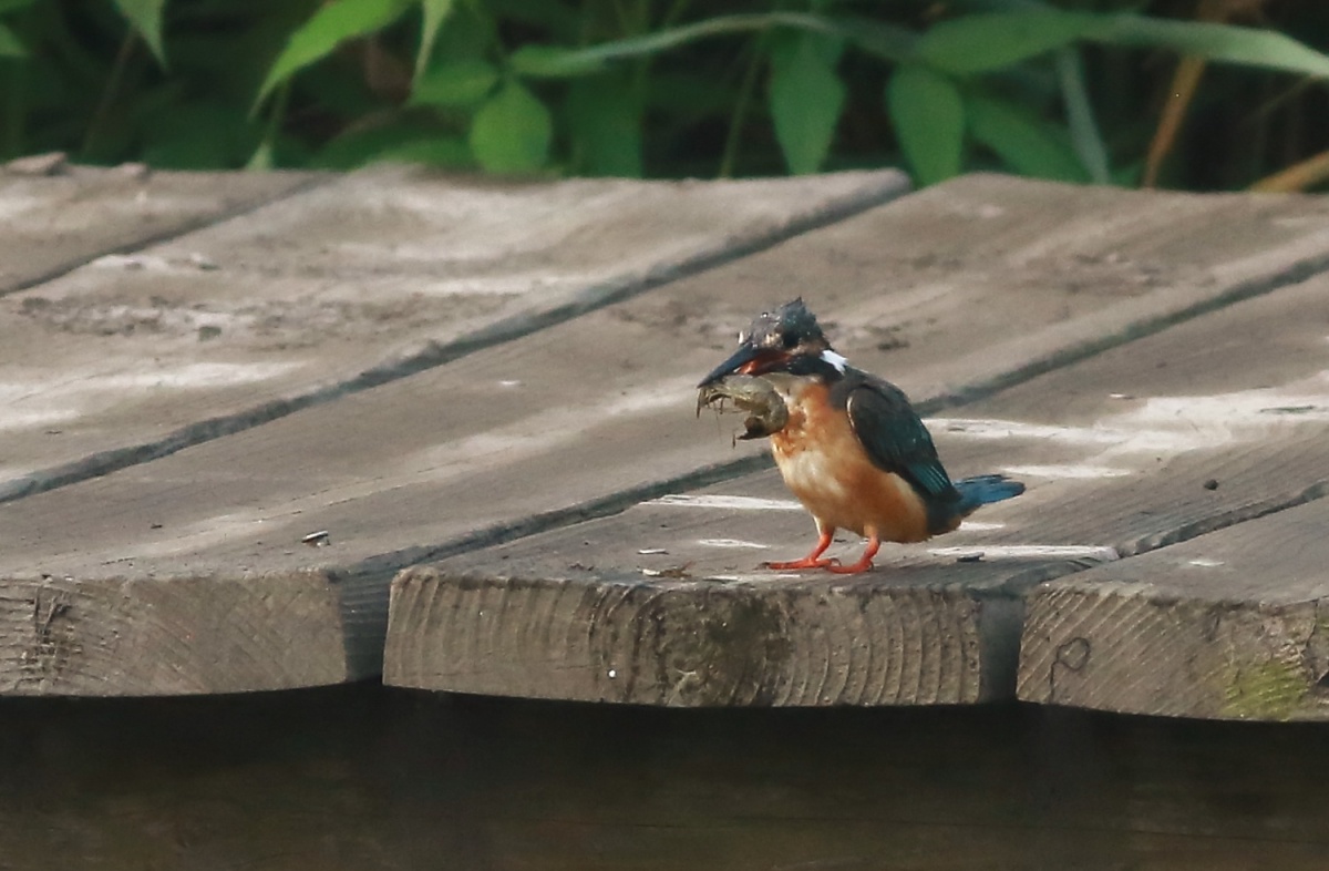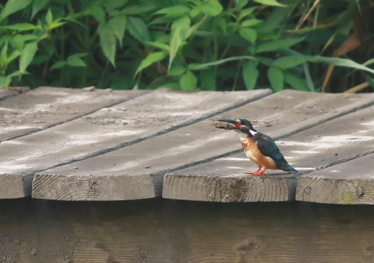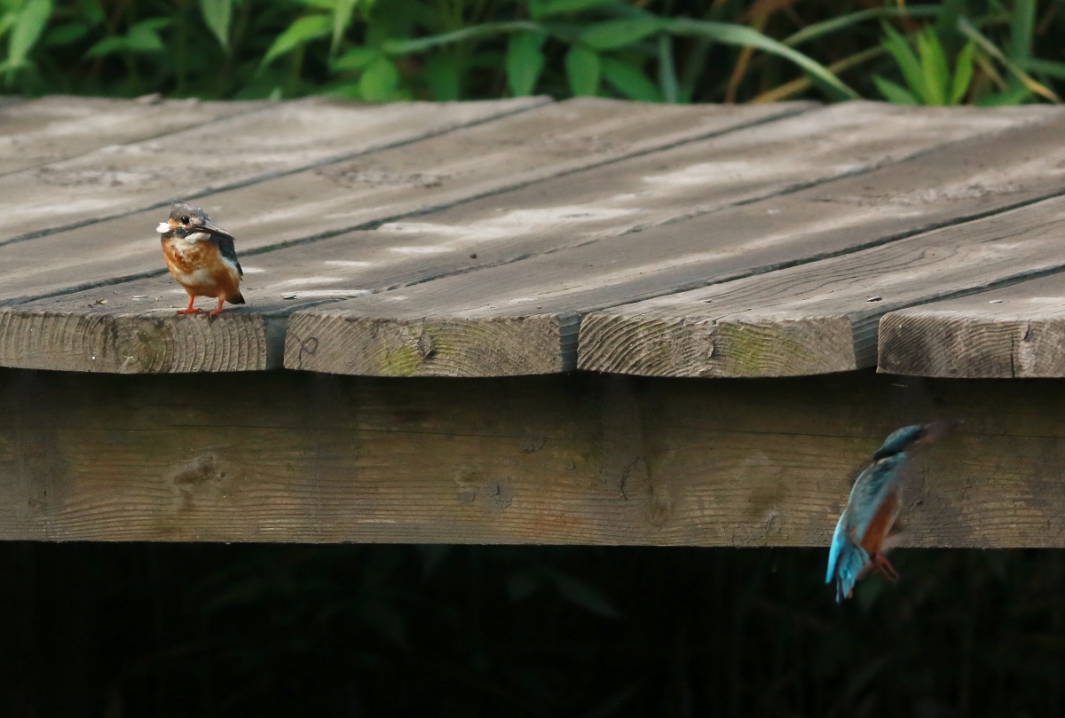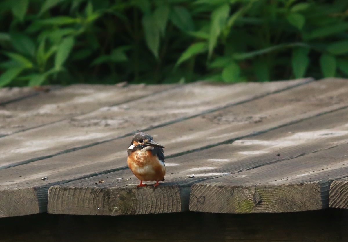 多分”とび子さん(翡翠♀)らしき翡翠と、子供と思われるチビ翡翠が2羽!……とび子さんを撮ってると、2羽で迎えに来て、サッサと川に行ってしまいました!チビ翡翠達はまだシャイな様です。~(笑)…… 池に着いて直ぐ撮りだし~撮影時間わずか3分!~(爆)